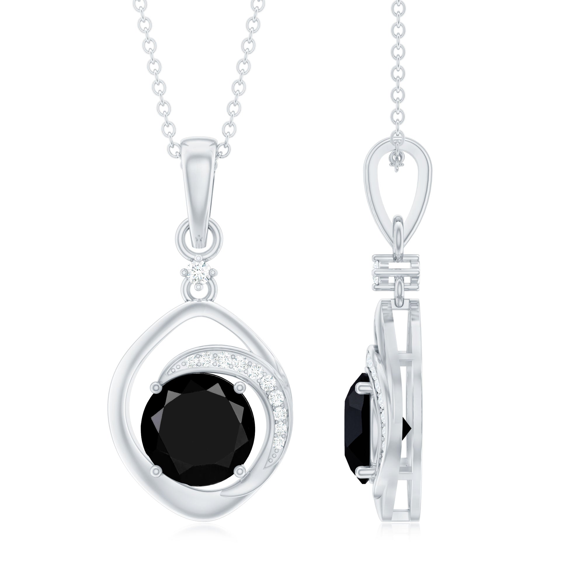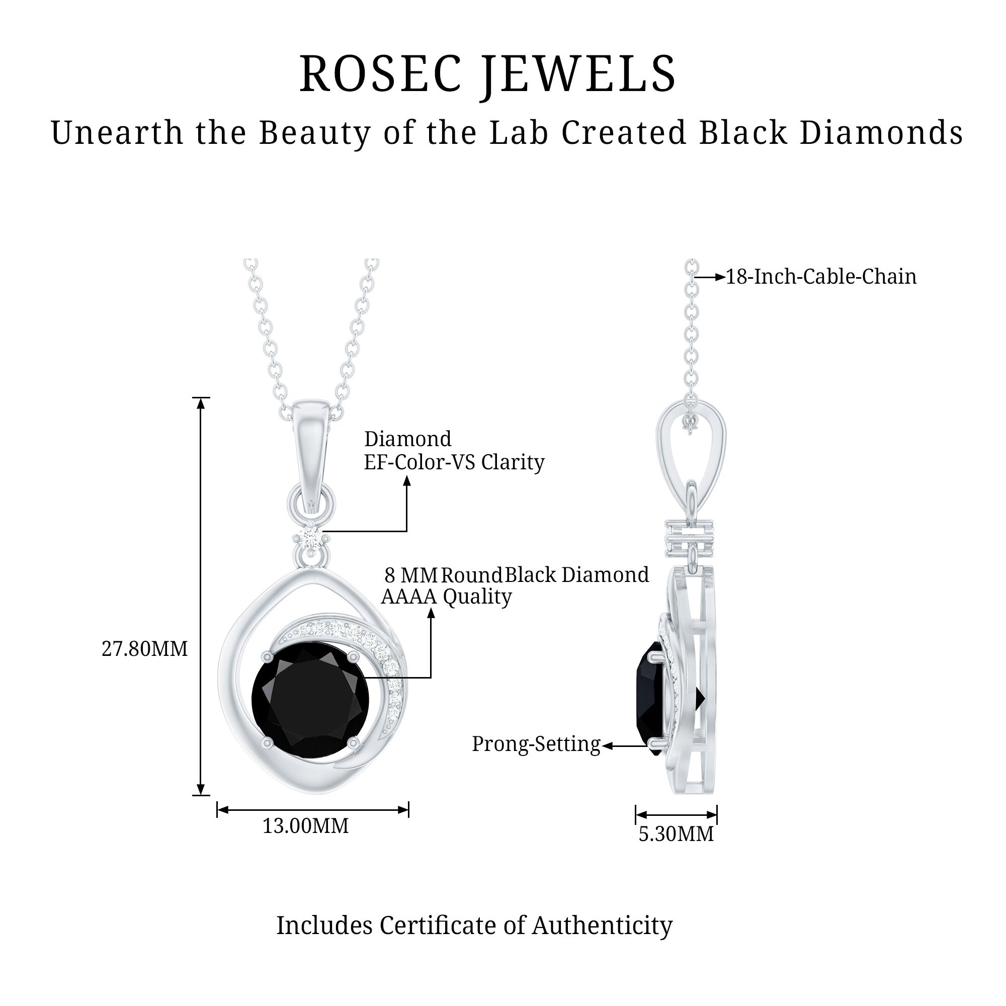 Highlight your neckline with this lab created Black Diamond Pendant Necklace, a contemporary design that effortlessly complements any style. The 8 mm Round Shape Black Diamond, takes center stage, while delicate White Diamonds (lab created) add a touch of sophistication. Elevate your look with this timeless Drop Pendant featuring Aaaa Quality Black Diamond and Ef-Vs Quality Diamonds where innovation meets enduring style. To ensure its quality, this Black and White Diamond Necklace includes a certificate of authenticity, providing peace of mind. Wear this Gemstone pendant with its matching earrings and guess what? You are just ready to rock the day.