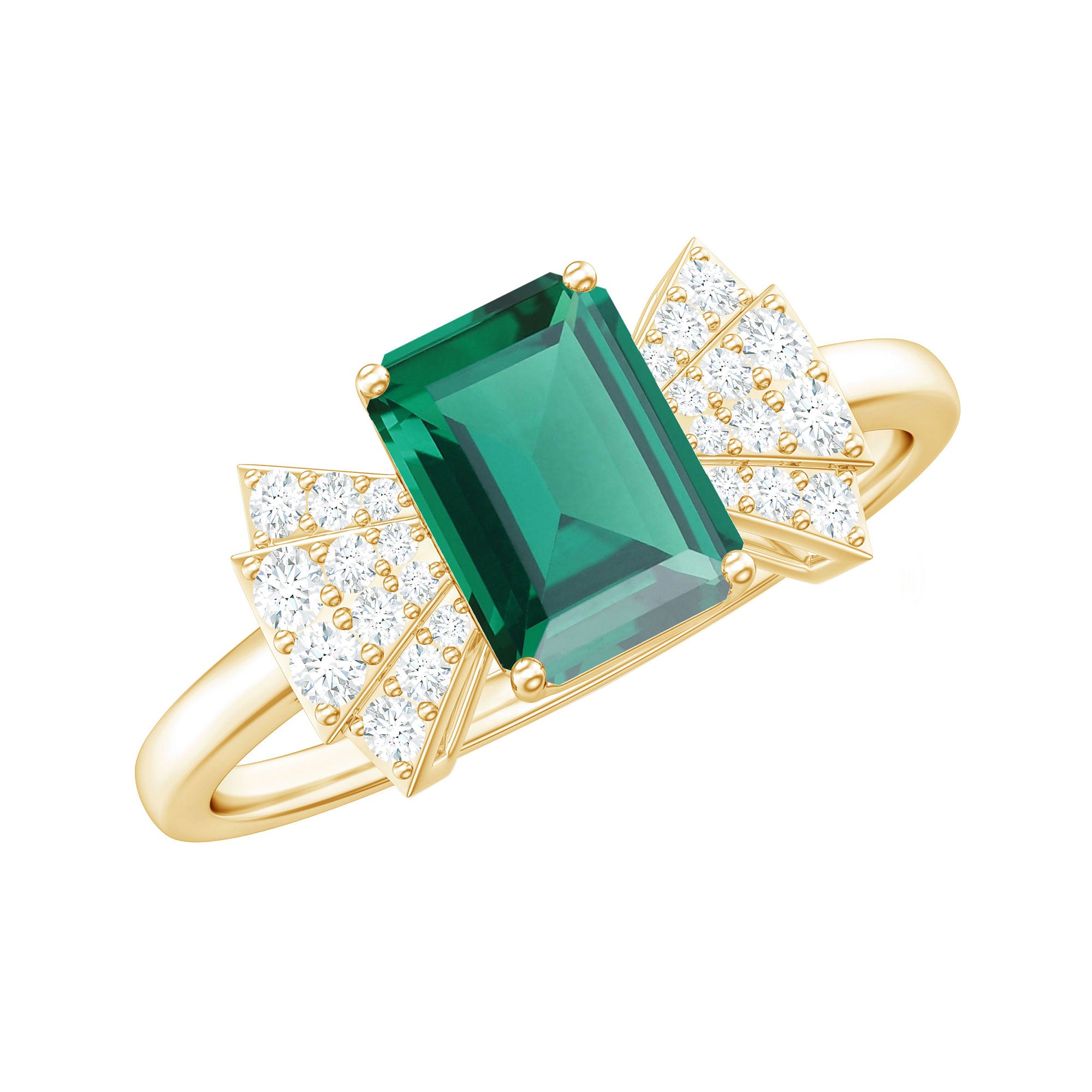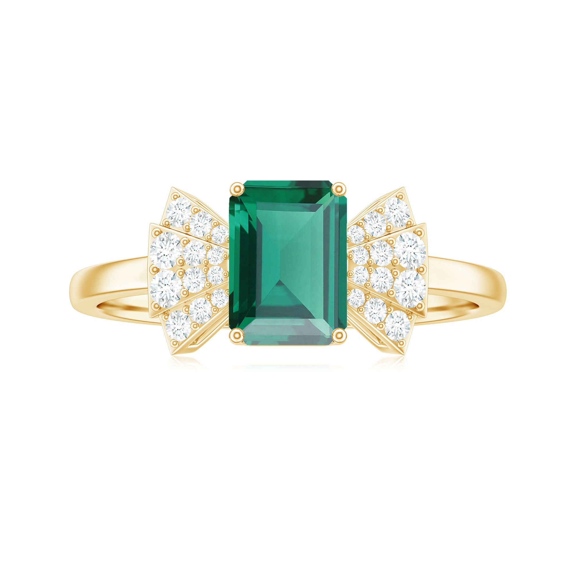 Designer Lab Grown Emerald Cut Emerald Engagement Ring with Bow Diamond