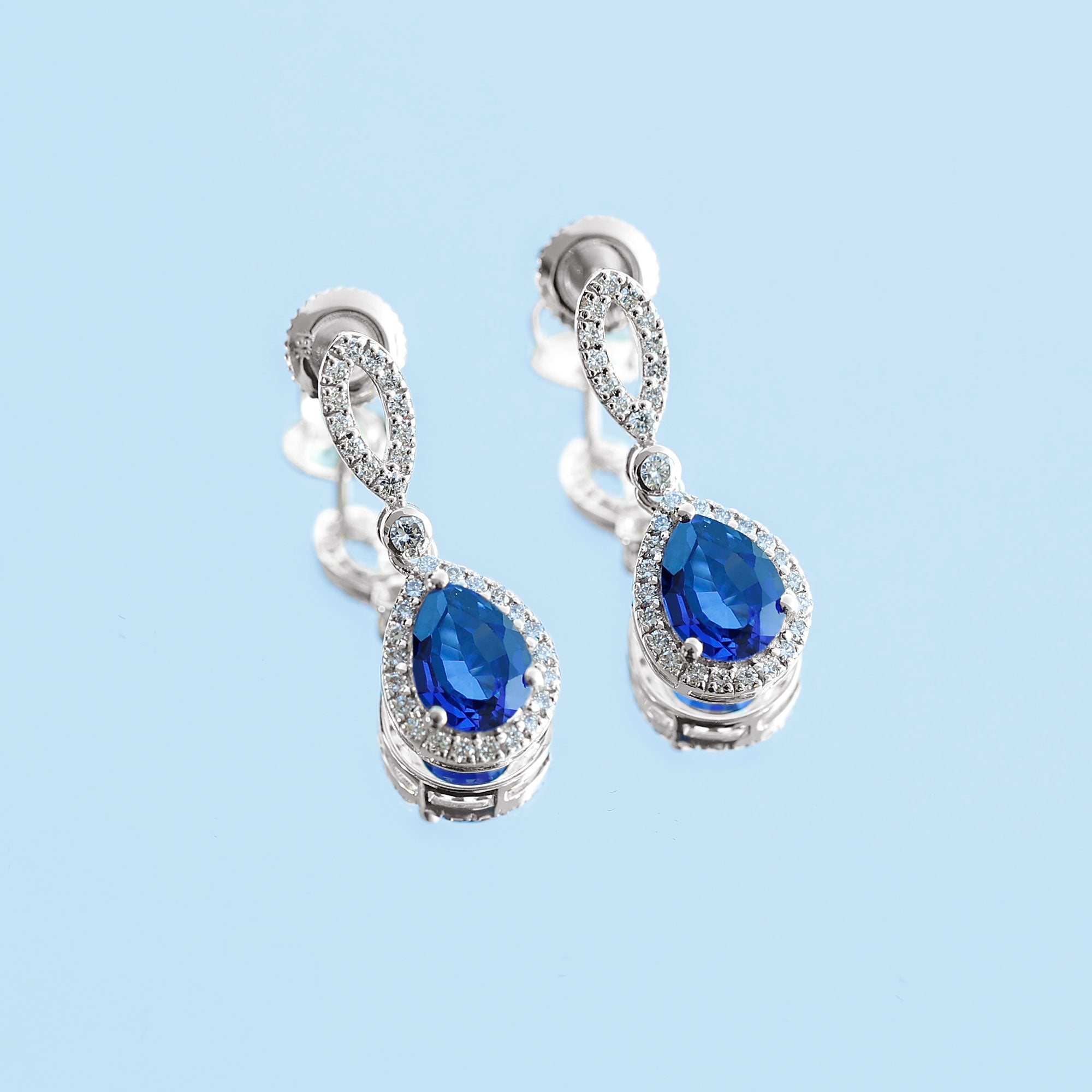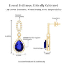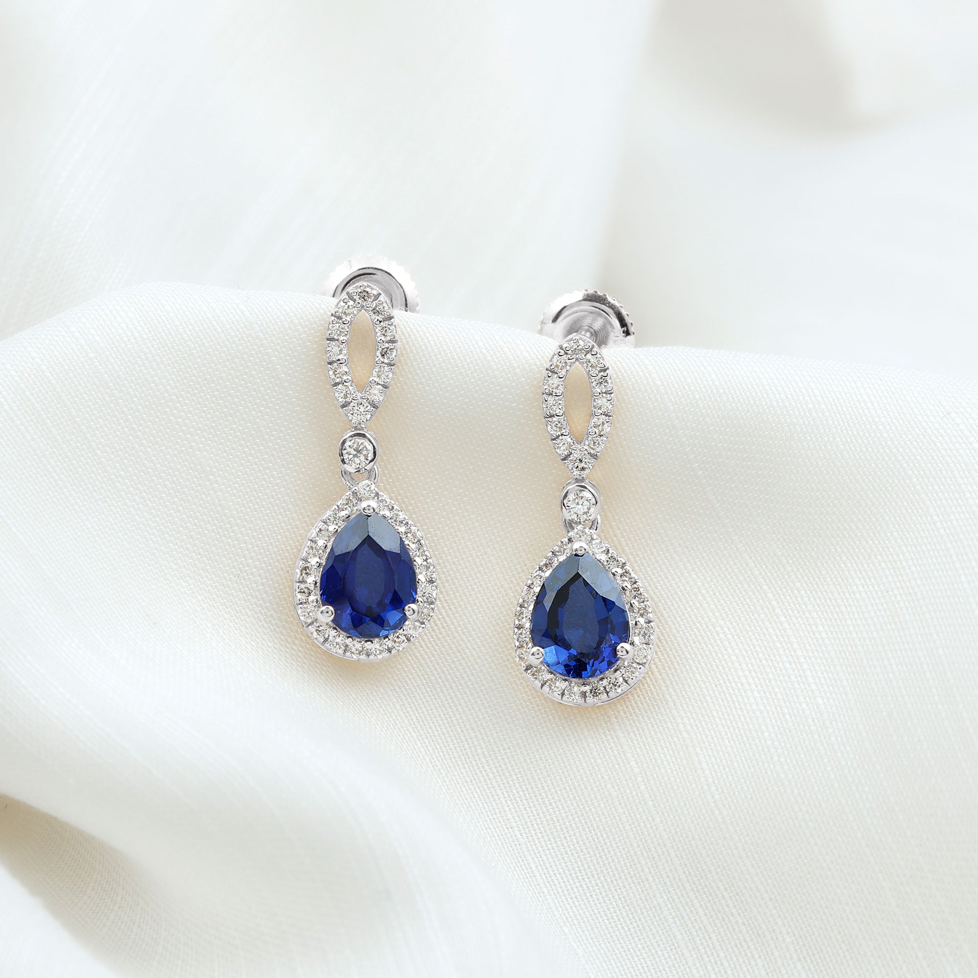 Enhance your style effortlessly with our unique Designer Lab Grown Sapphire Earrings. The intriguing design showcases a Prong Set Lab Grown 6x8mm Pear Shaped Blue Sapphire adorned with Round Lab Grown Diamond, adding a touch of sophistication to complement your ears. These Designer Earrings are versatile, perfect for both casual and evening attire, and are bound to earn you compliments every time you wear them. These earrings are adorned with Aaaa Quality Sapphire and Ef-Vs Quality Diamonds. These earrings can be worn solo or stacked with your other favorite pieces, these Sapphire Diamond Earrings allows you to create statement looks with ease. Surprise your partner with these Drop Earrings as a heart melting gift, expressing just how much they mean to you.
