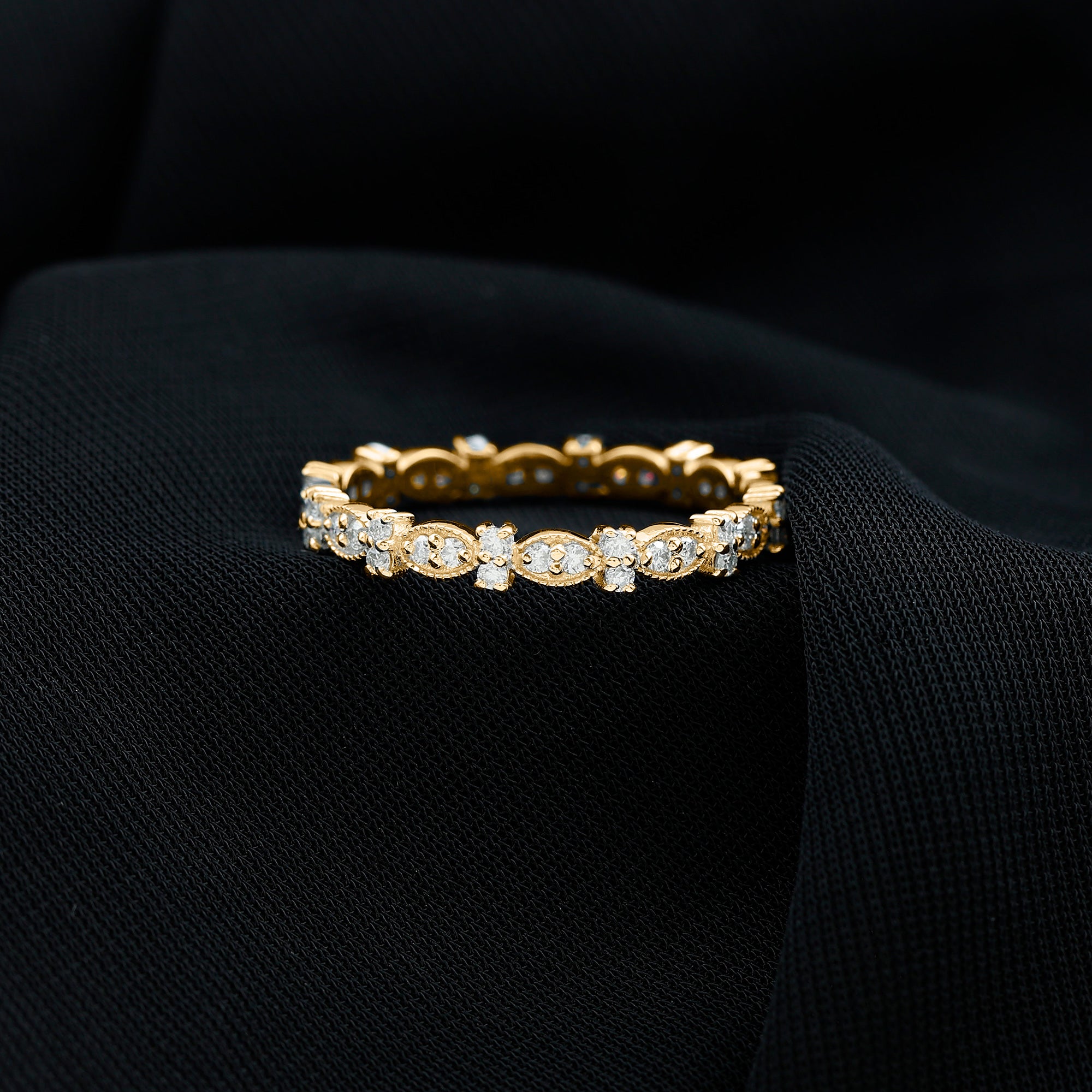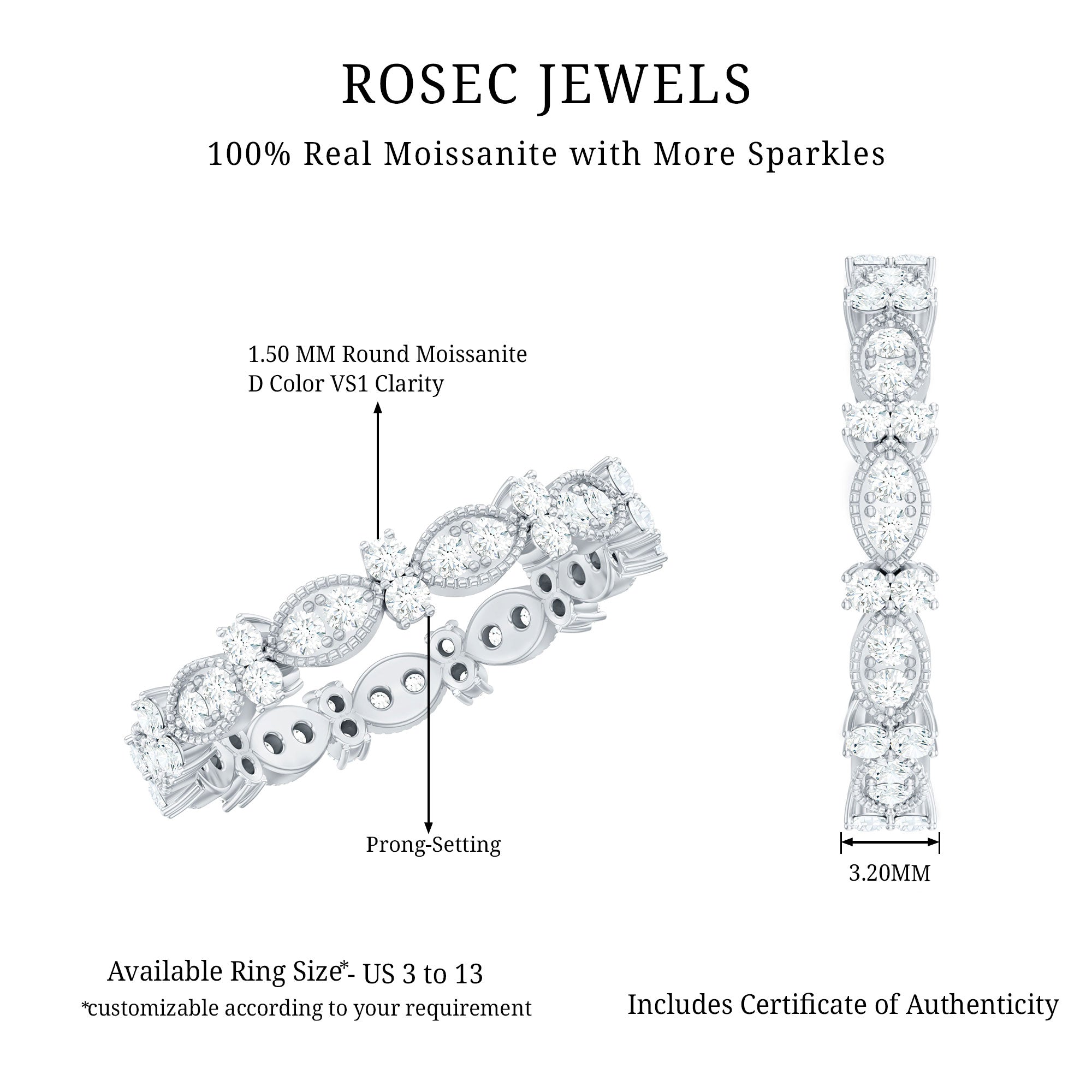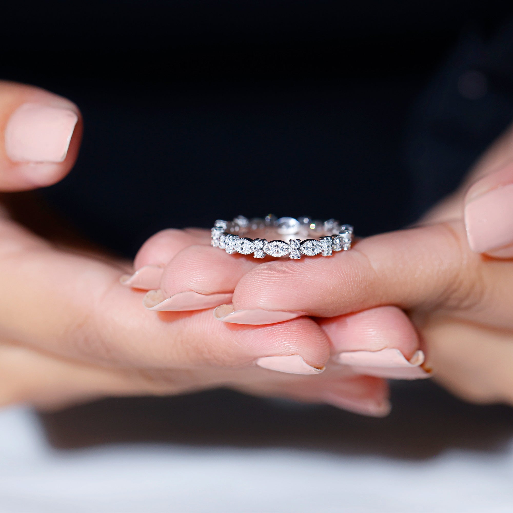 Make her surprise with this Moissanite Eternity Band. It is engraved with Round Shape Moissanite securely placed in Prong Setting and beautified with Milgrain Detailing. This Eternity Band Ring reflects D-VS1 Quality Moissanite that will make the day brighter and her smile wider. Present this Designer Wedding Band that will represent your eternal love and forever bond with your partner. This ring is embedded with high quality gemstone. Get her this beautiful band ring and witness a priceless moment that will be cherished forever.