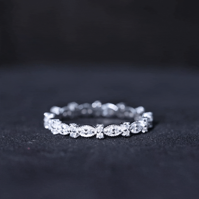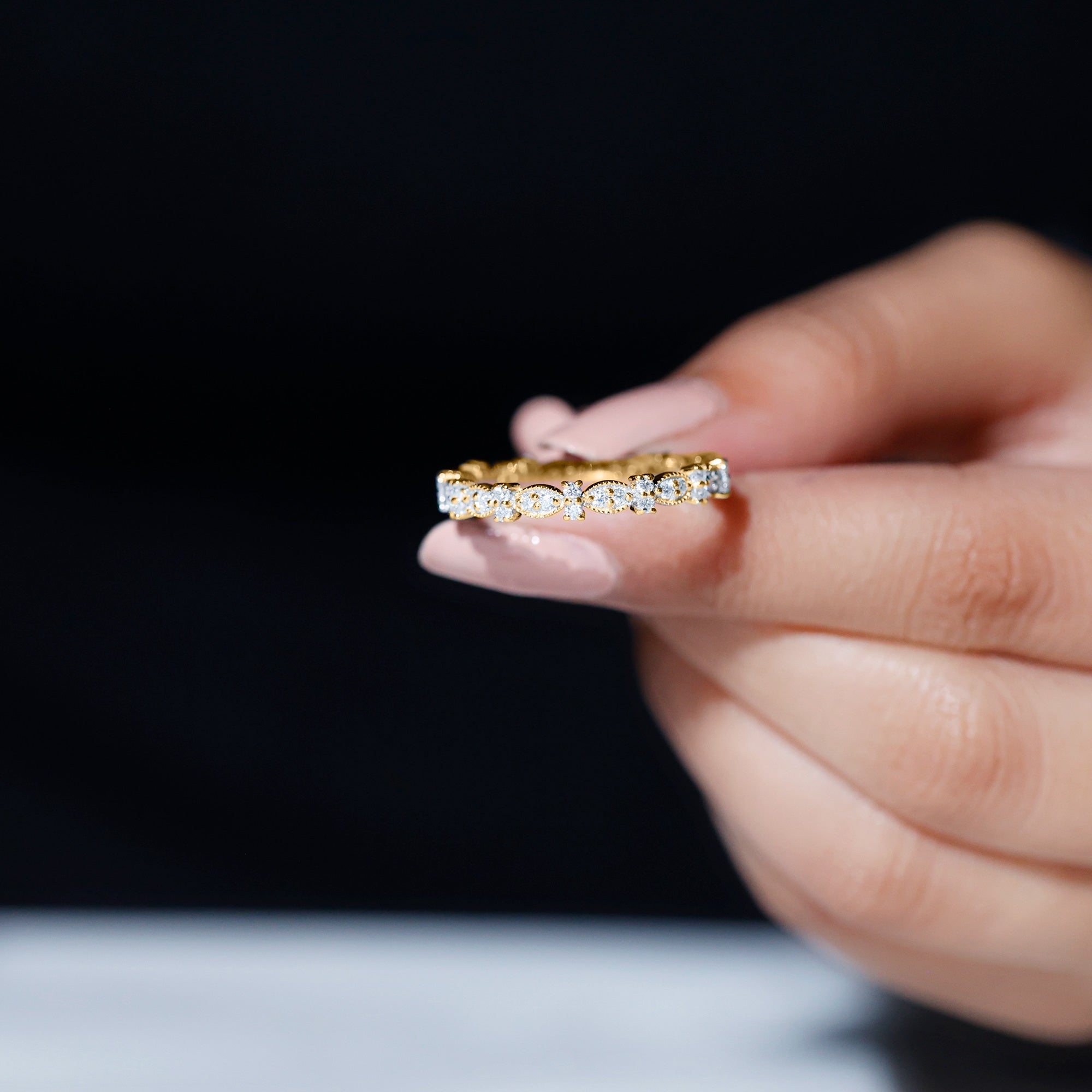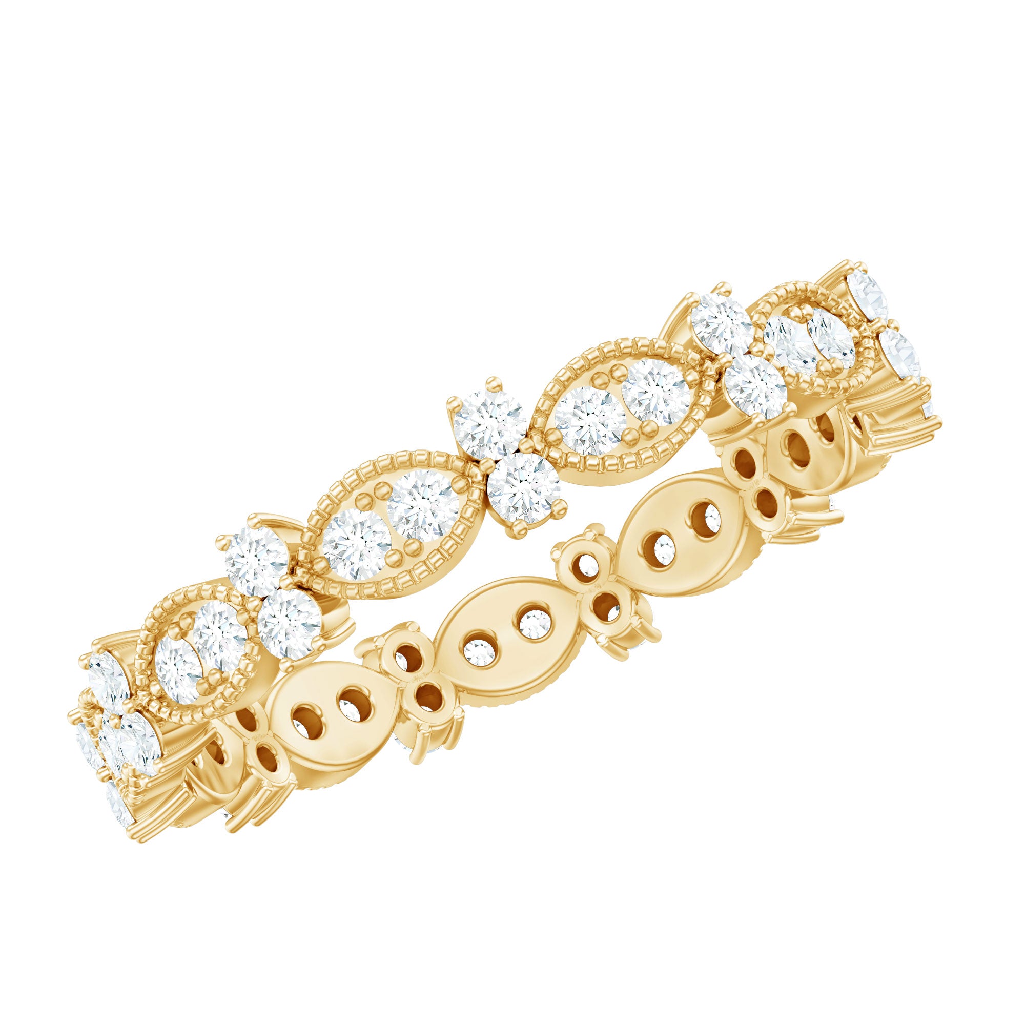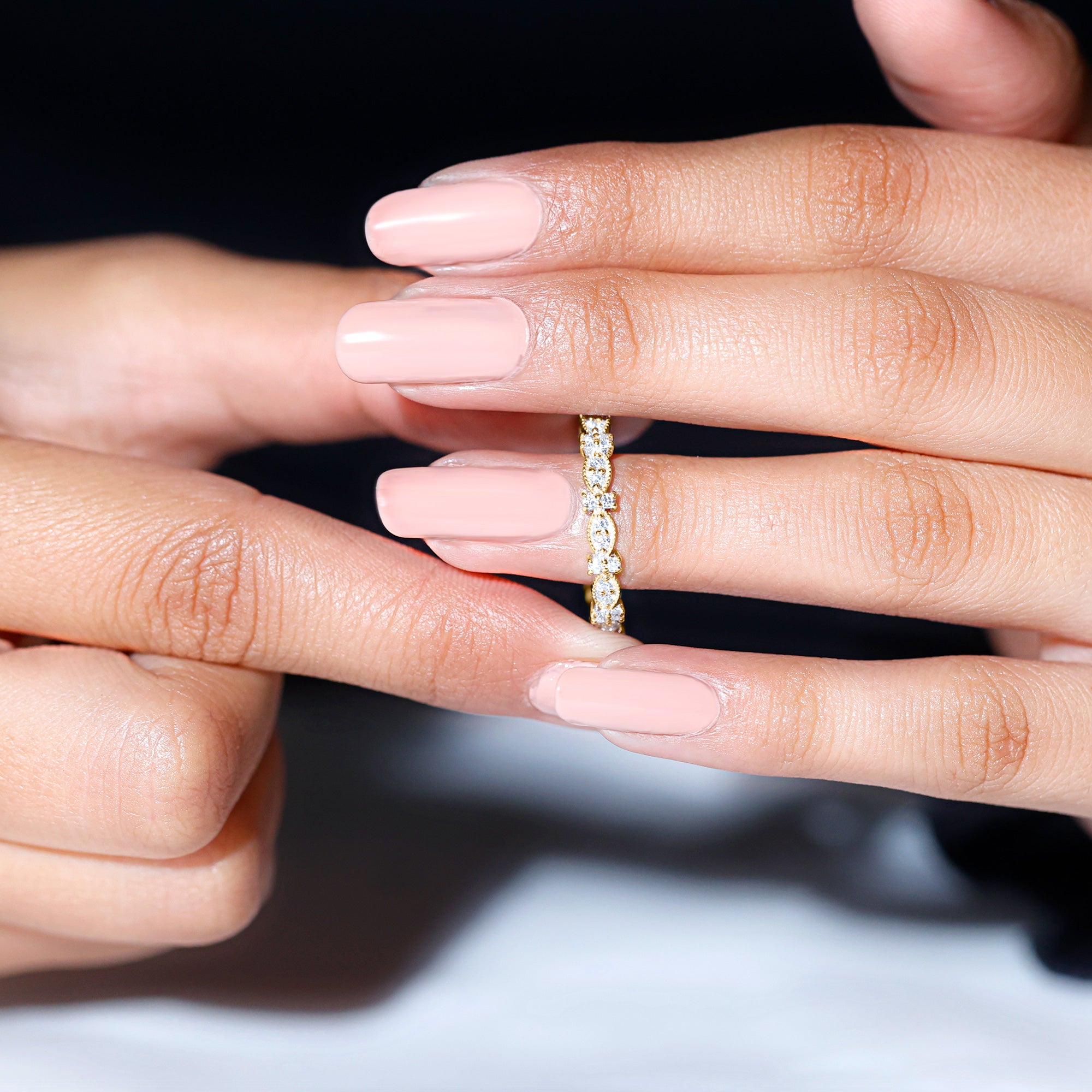 Make her surprise with this Moissanite Eternity Band. It is engraved with Round Shape Moissanite securely placed in Prong Setting and beautified with Milgrain Detailing. This Eternity Band Ring reflects D-VS1 Quality Moissanite that will make the day brighter and her smile wider. Present this Designer Wedding Band that will represent your eternal love and forever bond with your partner. This ring is embedded with high quality gemstone. Get her this beautiful band ring and witness a priceless moment that will be cherished forever.