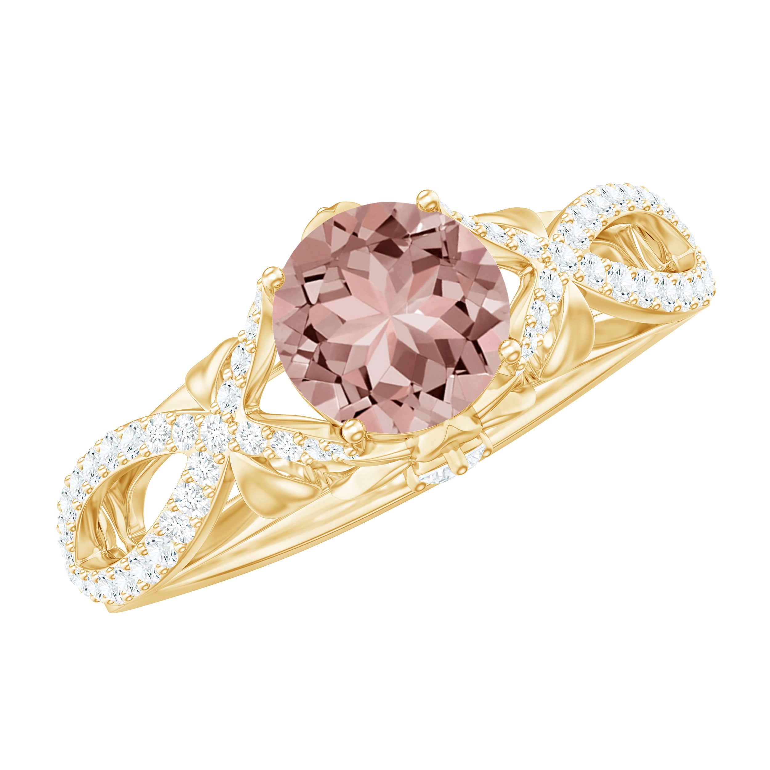 Enhance your look with a touch of glamour by wearing this stunning Engagement Ring. Sparkling Diamond adorns the metal, creating a dazzling effect, while a brilliant Round Shape Morganite takes center stage. This ring perfectly blends elegance and sophistication, making it an ideal choice for any special occasion. Let the beauty and brilliance of this ring make a statement and add a flair of glamour to your style.