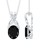 Designer Oval Black Onyx Solitaire Pendant with Diamond Twisted Bail