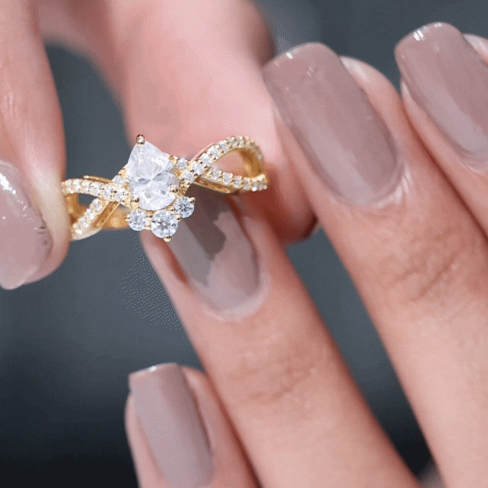 Designer Pear Shaped Moissanite Crossover Engagement Ring