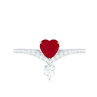 Make your better half smile by giving her this stunning Designer Heart Engagement Ring. This Heart Engagement Ring is adorned with a Heart Shape Ruby set in a prong setting with a round and pear cut Diamond set in a prong setting. Featuring gold metal construction, this Heart Ruby Engagement Ring is exquisite.