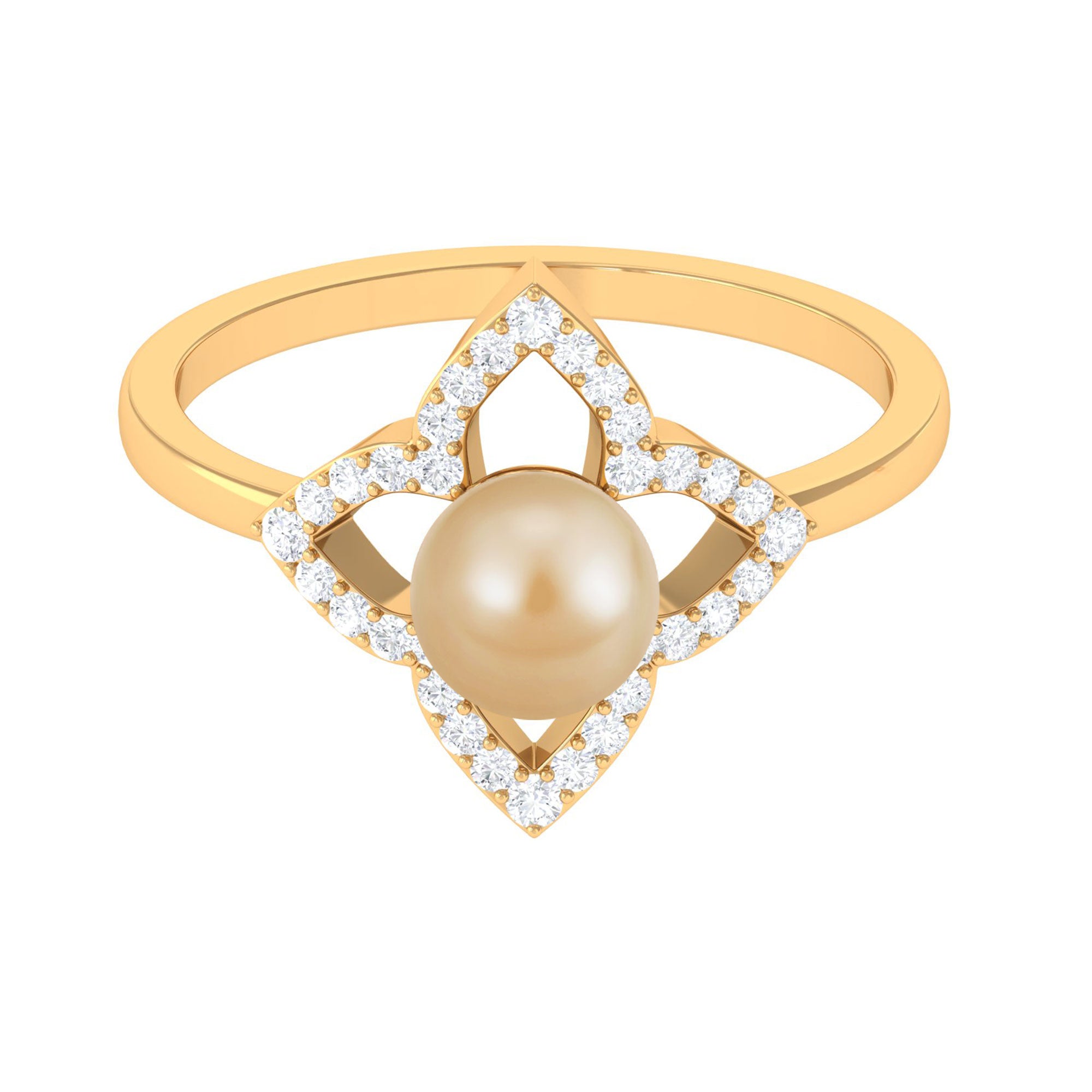 Elevate your look with the beautiful South Sea Pearl Floral Ring, perfect for those with a flowery and blossoming personality. The round South Sea pearl is set at the center, surrounded by a delicate Diamond floral halo that adds a touch of elegance and femininity. This engagement ring is perfect for June women looking to make a smashing statement and enhance their already stunning appearance.