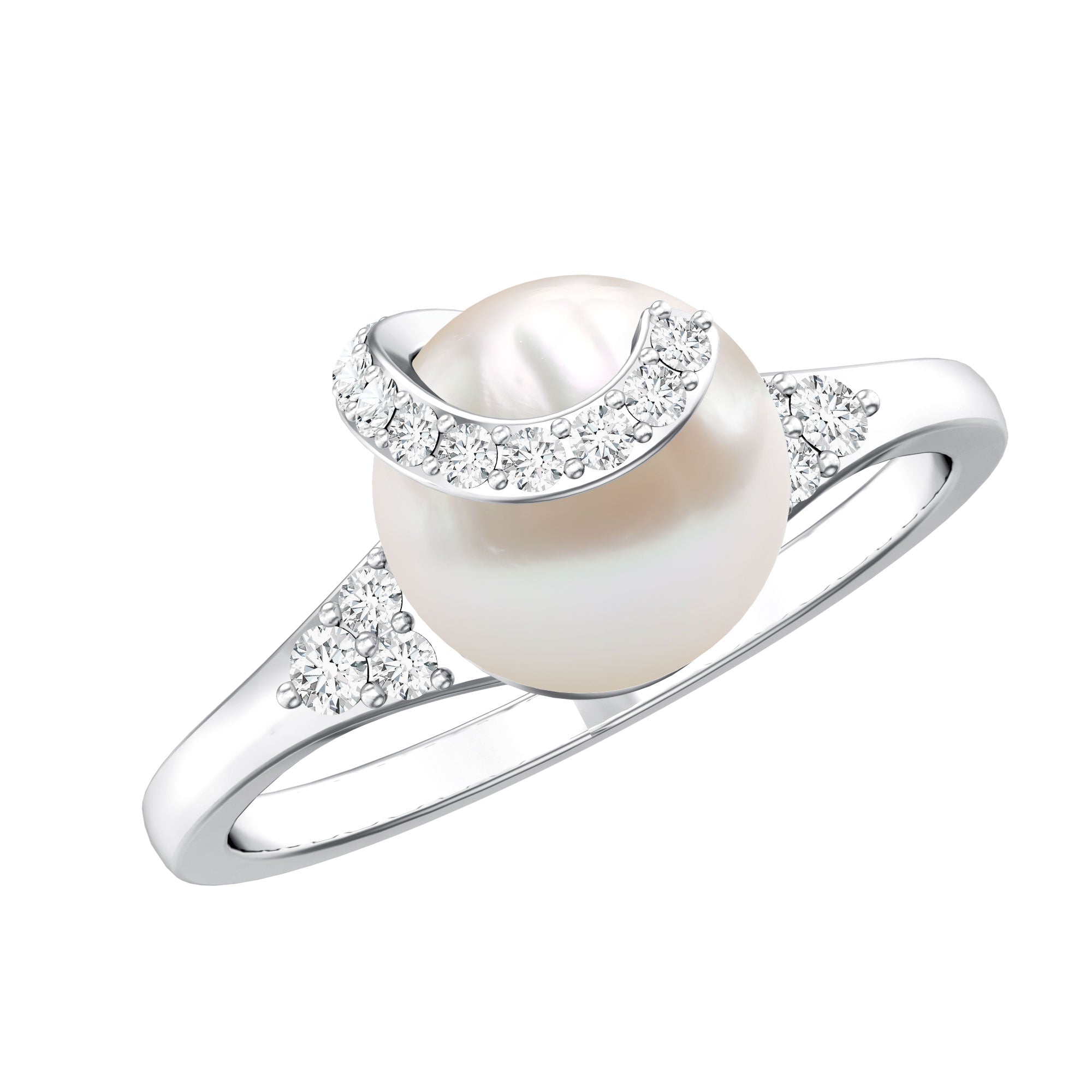 A classic piece with timeless appeal this Pearl Solitaire Engagement Ring is adorned with the brilliant Round Shape Freshwater Pearl with Round Diamond set on Trio and on above the pearl. This Freshwater Pearl Ring is crafted in Gold. This charming White Freshwater Pearl and Diamond Ring make a trendy and elegant choice for your big day.