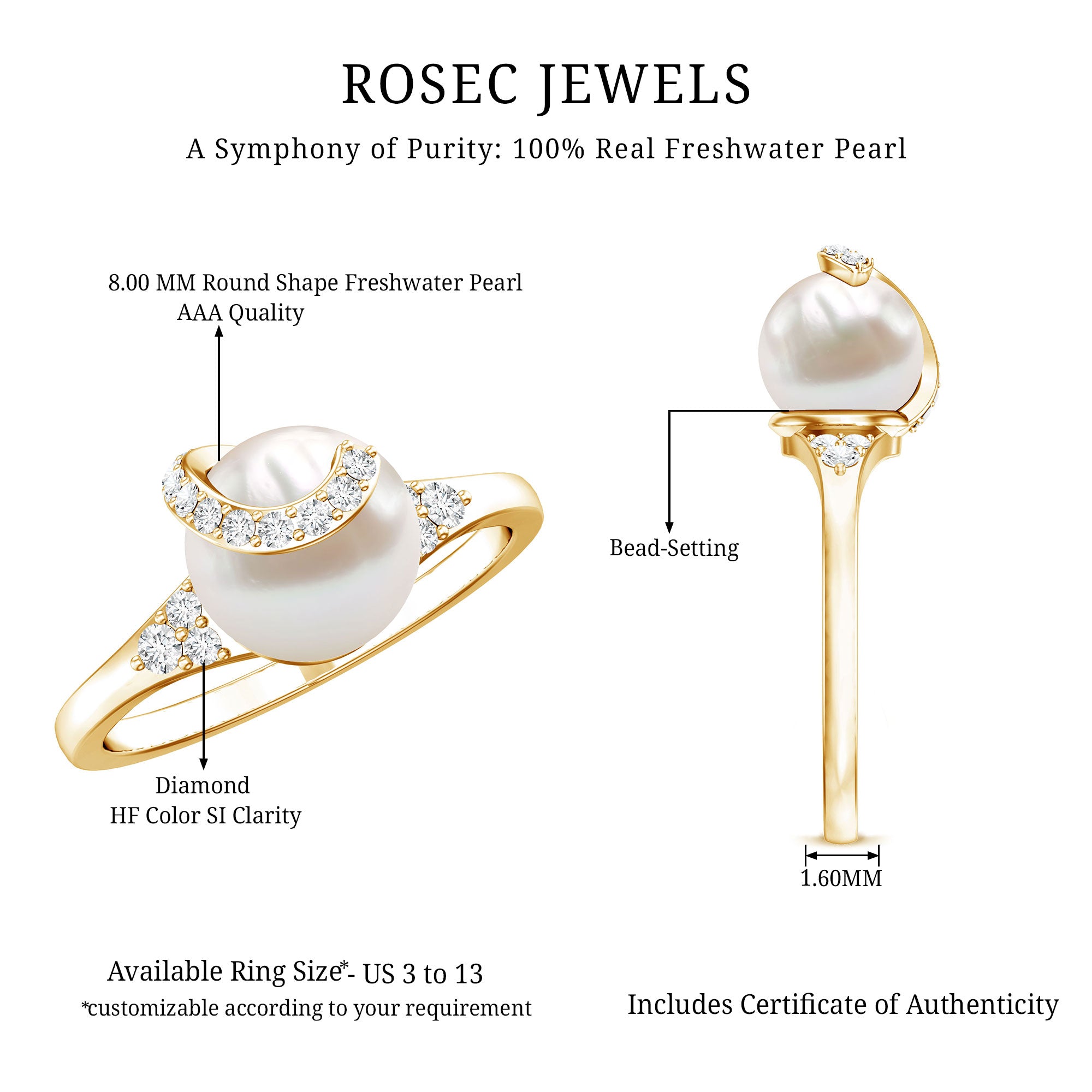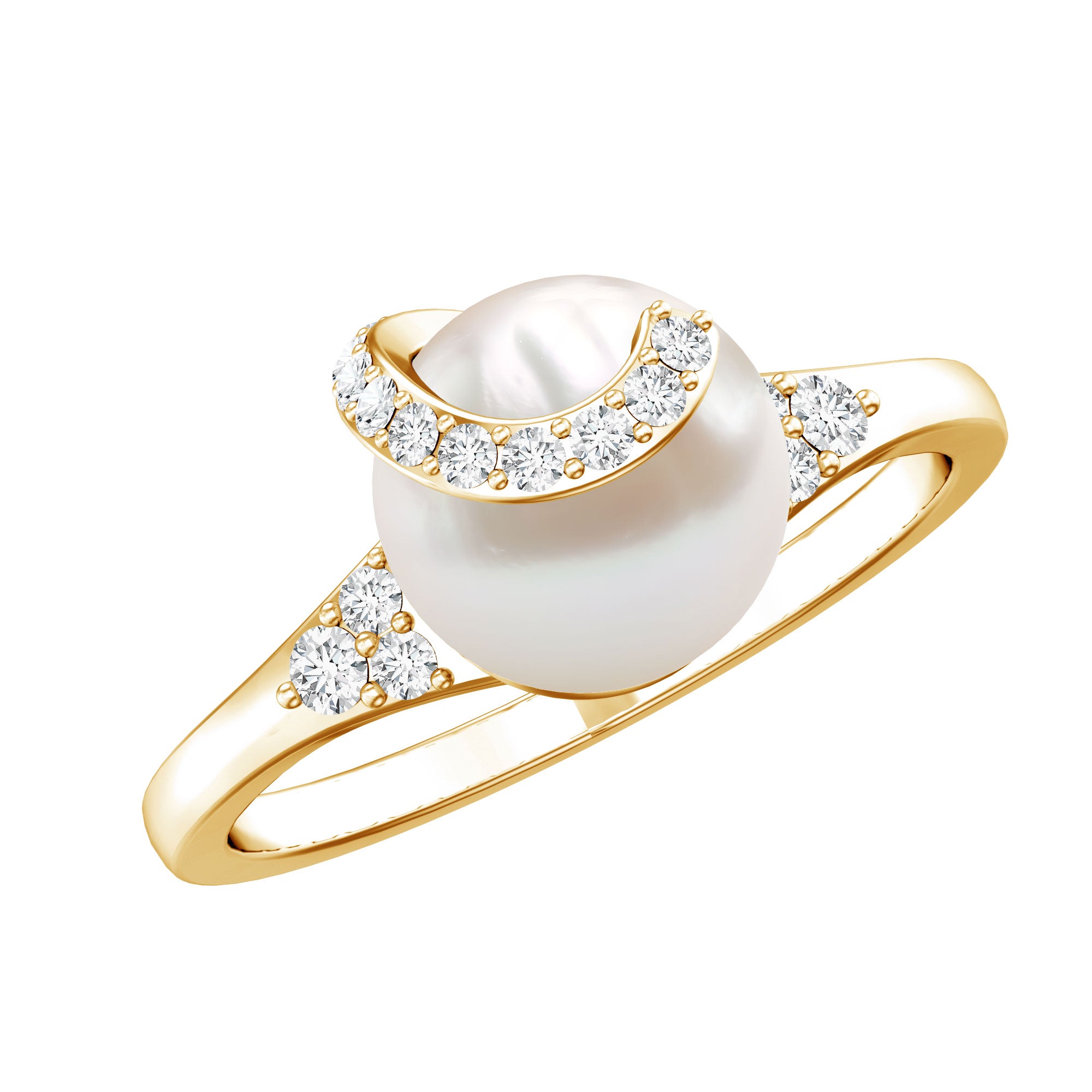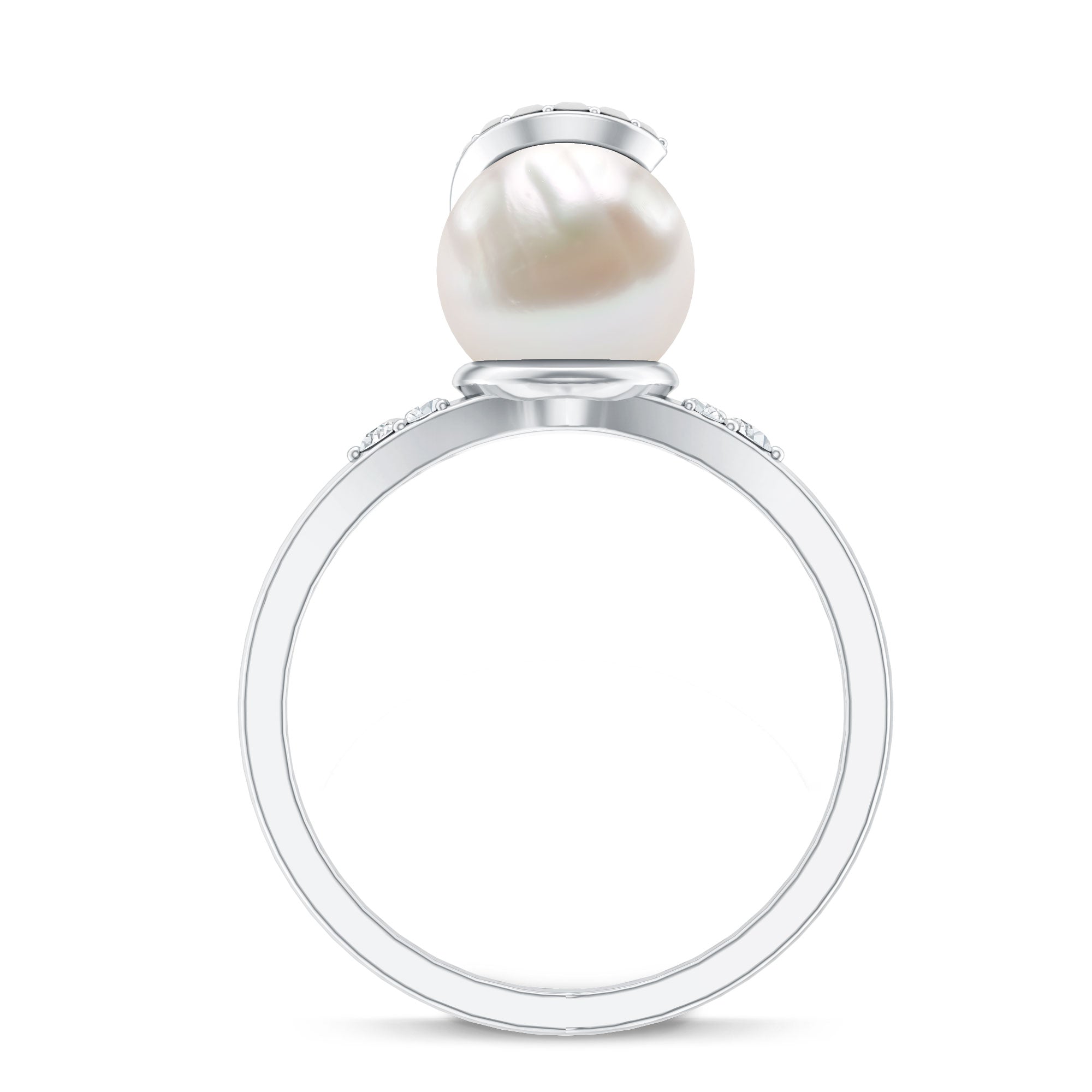 Elegant Freshwater Pearl Solitaire Ring with Diamond Trio