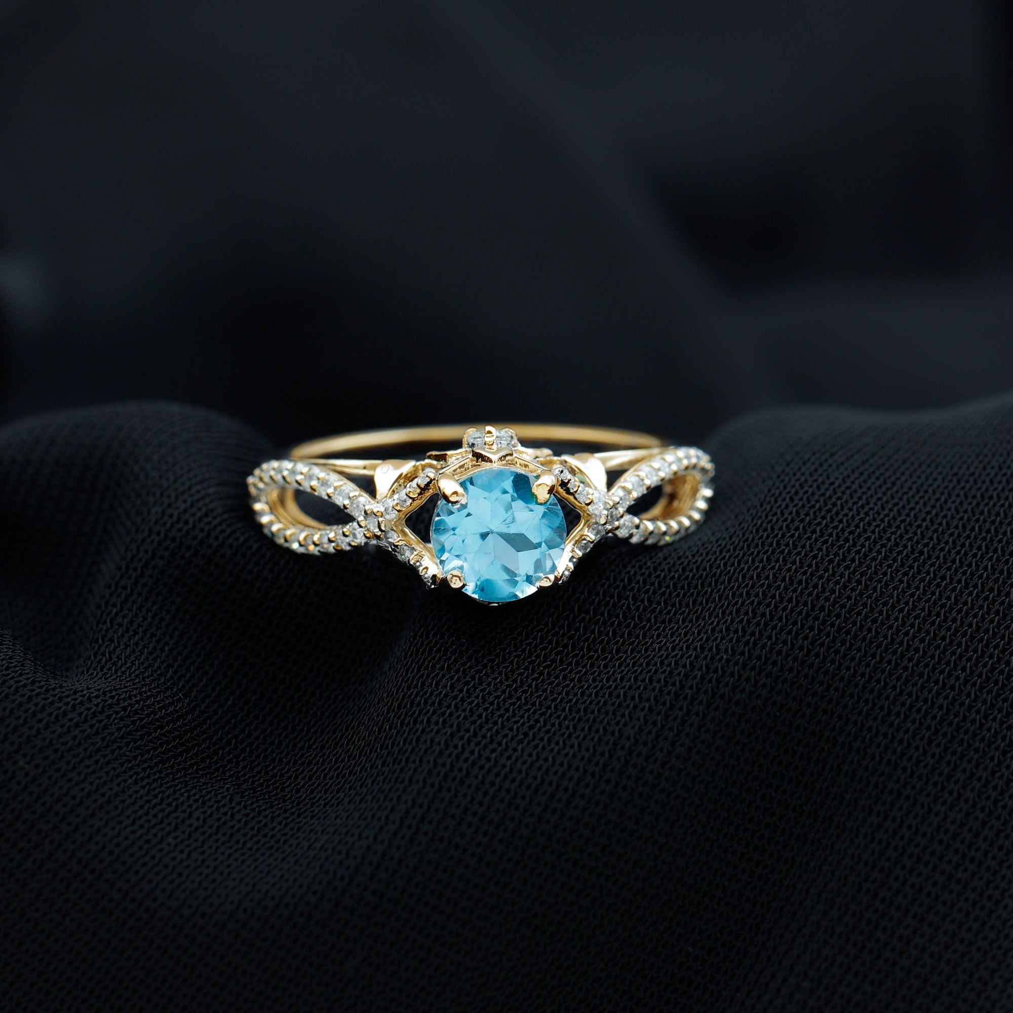 Designer Swiss Blue Topaz and Diamond Crossover Engagement Ring