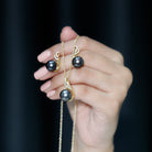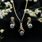 Designer Tahitian Black Pearl Necklace and Earrings Set with Moissanite