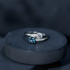 Designer Two Stone Engagement Ring with London Blue Topaz and Moissanite