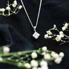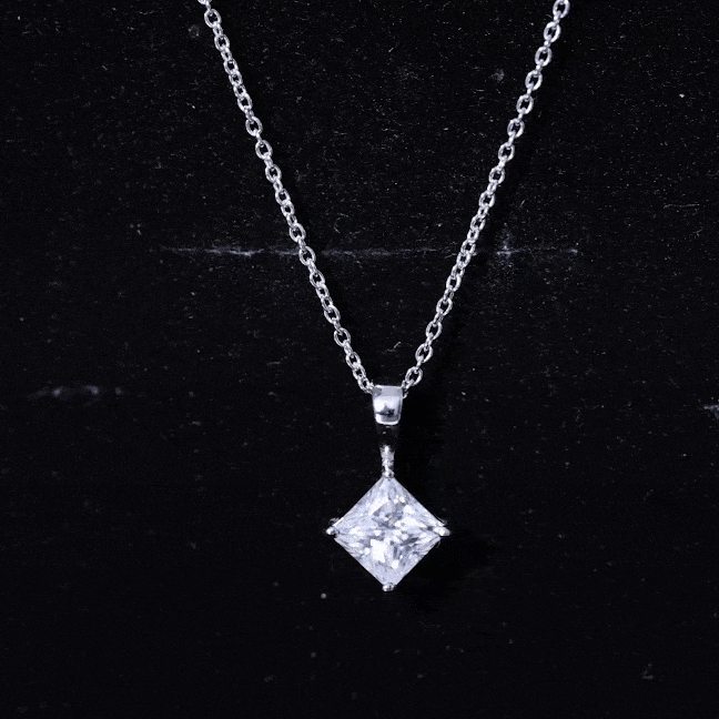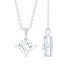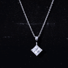 Diagonal Set 8 MM Zircon Princess Cut Solitaire Pendant With Chain