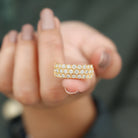Grace your hand with this exquisite Diamond Wedding Band, a wonderful way to honor love, milestones, and cherished memories. This gorgeous Eternity Wedding Ring showcases three rows of round diamond stones, each securely held by engraved bezel setting, shimmering with every movement. This Wedding Band for Women signifies eternity, embodying something significant, stylish, and enduring. The Real Diamond stones are meticulously arranged over half of the band, forming a semi-circle of brilliance that is truly stunning. Whether you are celebrating a wedding anniversary, a special occasion, or simply treating yourself to something delightful, this Diamond Anniversary Band adds a beautiful touch of elegance to your outfit. Comfortable enough for everyday wear yet sophisticated for special occasions, this Half Eternity Band is a piece you will always cherish. Presented in a lovely jewelry box, it is ready to bring joy to someone special. This Three Row Diamond Ring serves as a reminder of your journey, highlighting that every moment in life deserves to be celebrated. Let your hands exude happiness, style, and a touch of magic.
