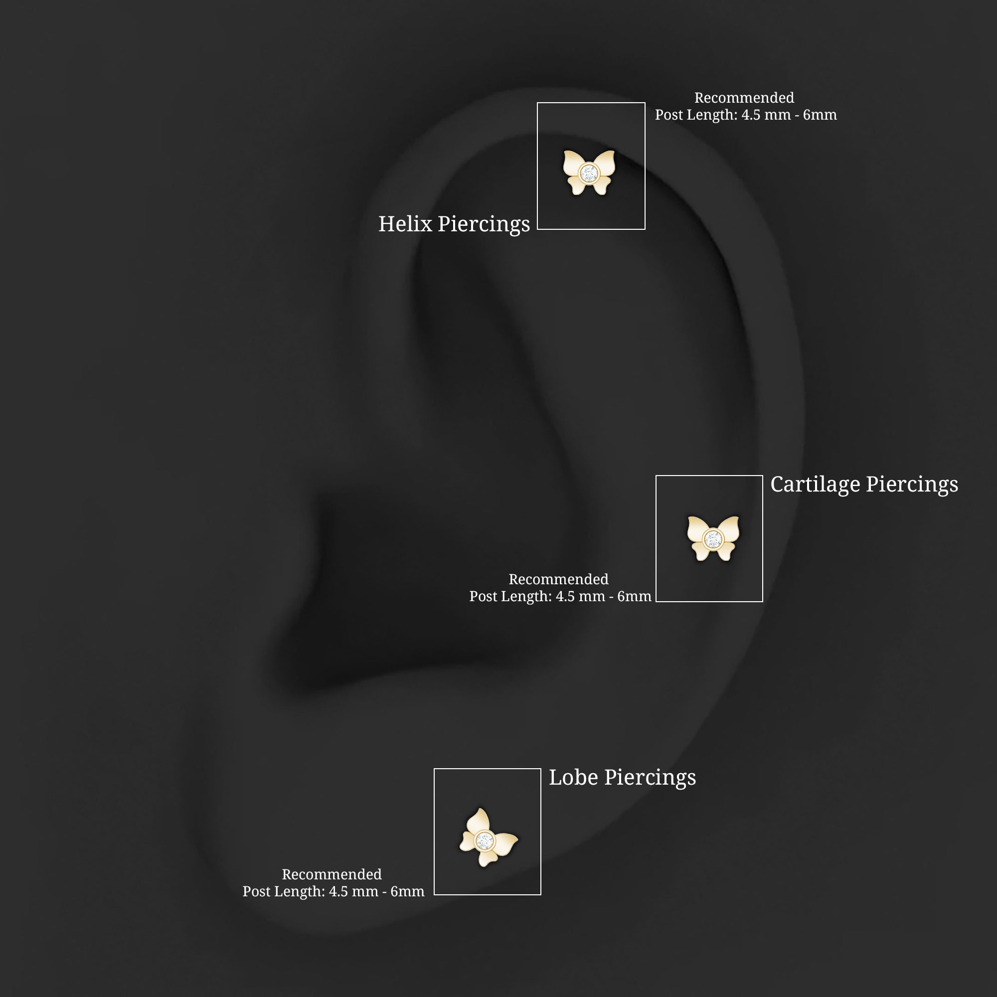 Cute piercing earrings have taken the fashion world by storm, have never been cooler. If you are envisioning an embellished ear and seeking inspiration to create a layered look, consider this Diamond Butterfly Earring.Embellished with a sparkling Round Diamond set in Bezel Setting at the heart of the butterfly design, crafted with Solid Metal. Now, imagine the charm of a Butterfly Earring designed specifically for your Helix Piercing. This delightful piece and embark on a journey to curate your personalized earring ensemble.