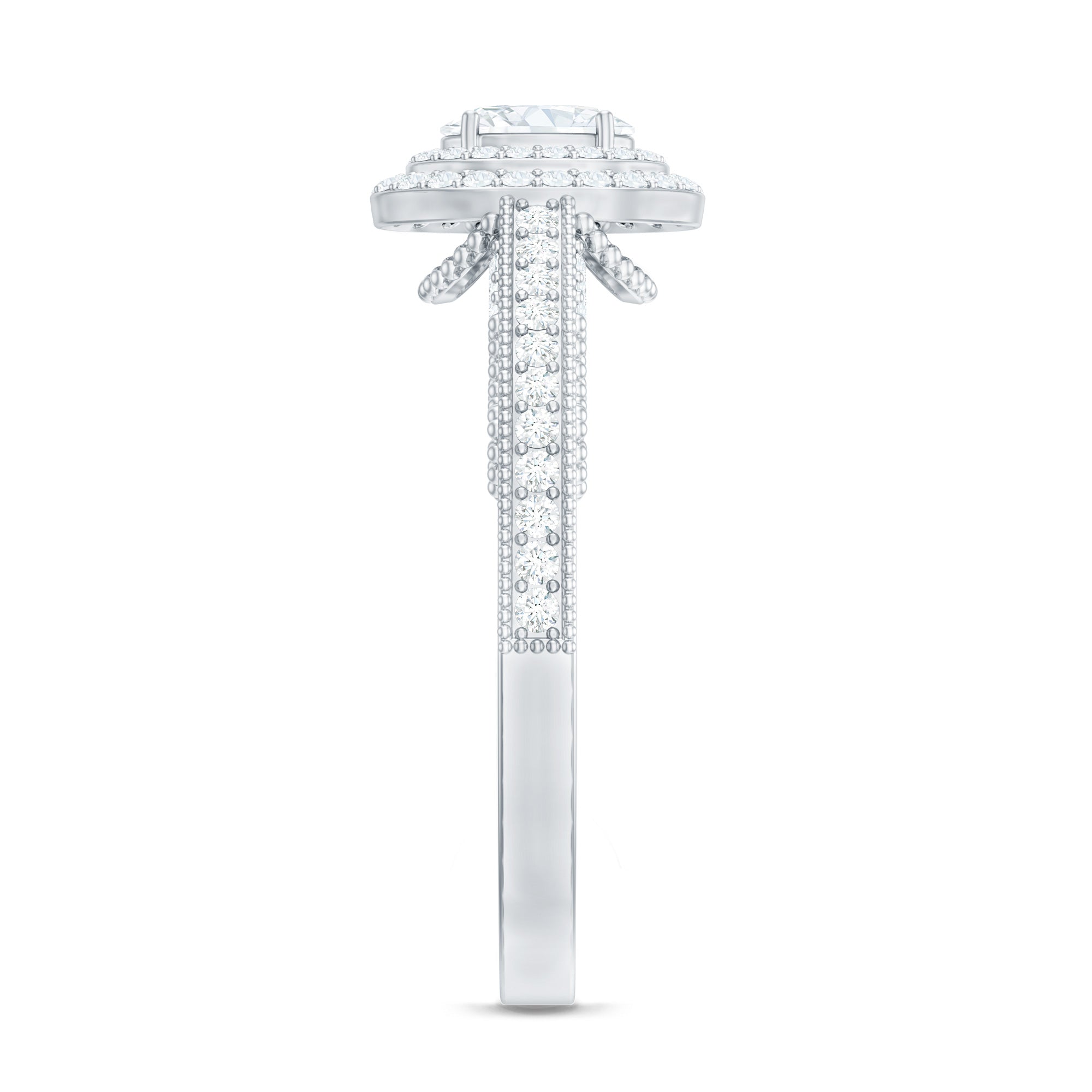 Diamond Double Halo Engagement Ring with Beaded Detailing