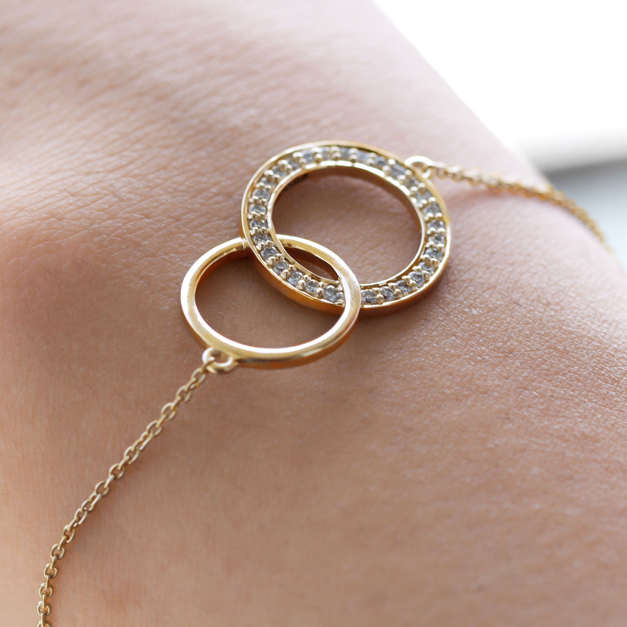Step into a world where modern sophistication meets timeless beauty. This Interlocking Circle Bracelet stands as a symbol of lasting connection and elegant design. Meticulously crafted, this Open Circle Bracelet showcases a stunning combination of two interlocking circles, one adorned with a brilliant display of Round diamonds set in a Pinpoint Setting, while the other remains a sleek metal finish. The delicate yet eye-catching interlocking features create a visual masterpiece, presenting a fresh, modern interpretation of the classic Real Diamond Bracelet for Women. This enchanting Diamond Eternity Bracelet honors the beautiful connection of individual paths, intertwined into a single, stunning statement. This Diamond Chain Bracelet is the ideal accessory for the woman who embraces modern style while cherishing the timeless charm of diamonds, representing refined taste and assured elegance. Whether you choose to stack it with other beloved pieces or let it shine on its own, this Diamond Bracelet Chain seamlessly transitions from day to night.