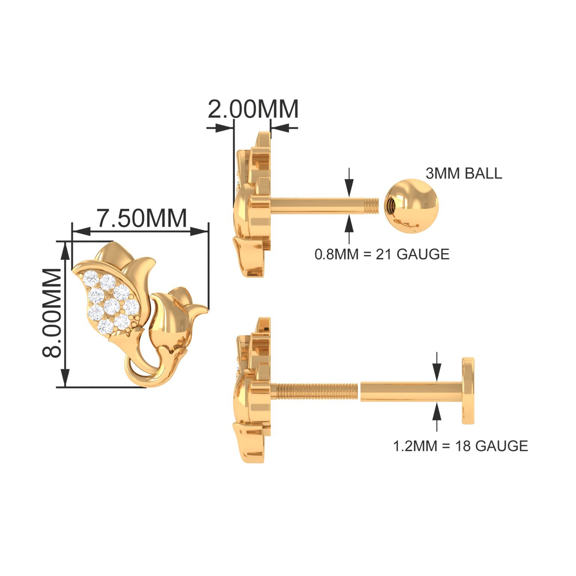 Modern and playful, this Diamond Floral Earring is the elegance you’ve waited for. Bejeweled with Round Diamonds in Pave Setting.Ideal for your Helix, Cartilage, Tragus, Conch, or Upper Lobe Piercing, this Diamond Earring is an expression of incredible charm that seamlessly complements your casual, formal, and party attire. Capture attention with every turn. Surprise your beloved wife with this stunning Diamond Helix Earring – a perfect anniversary, birthday, or Mothers Day gift. Anticipate her priceless reaction as she receives a symbol of love that matches the radiance of her spirit.