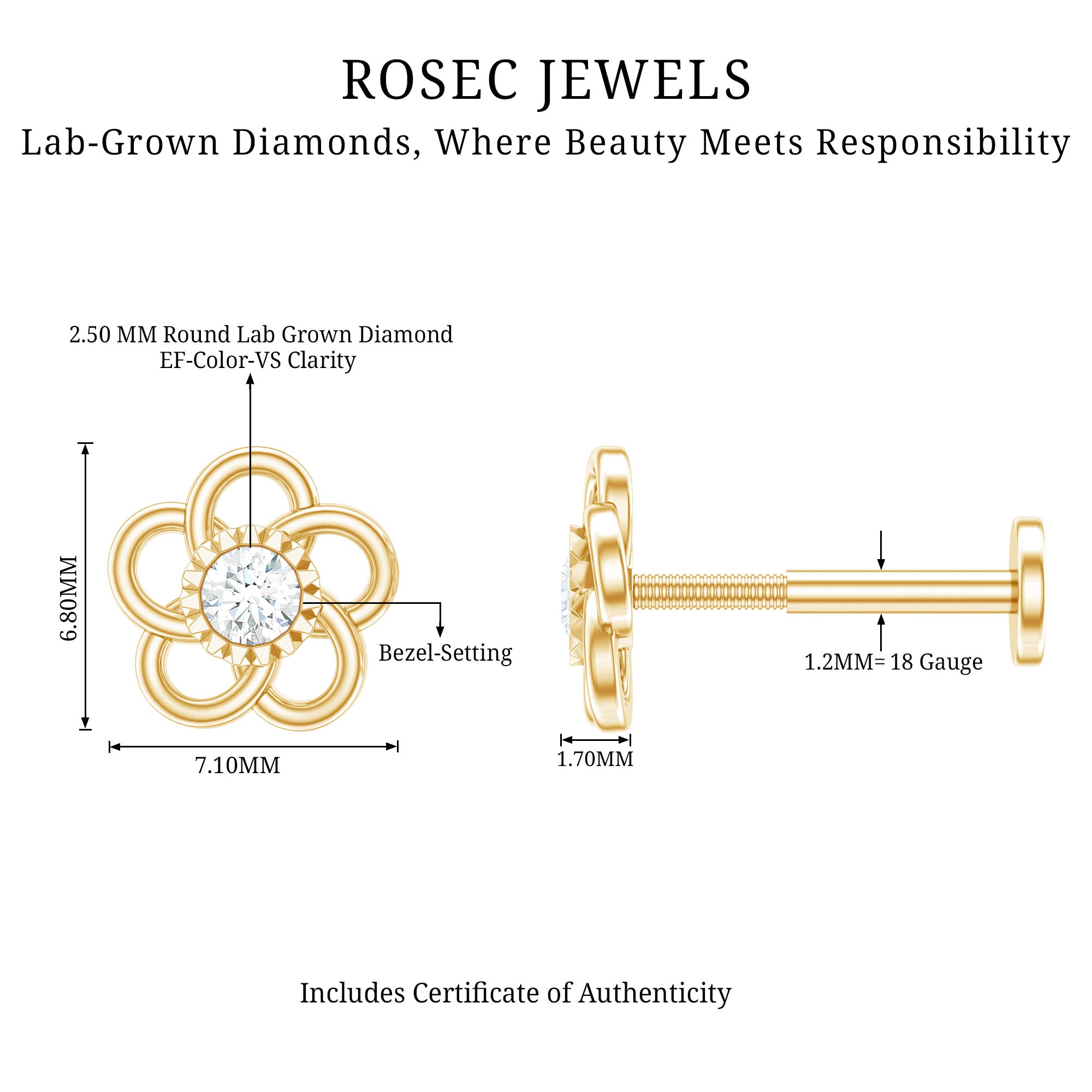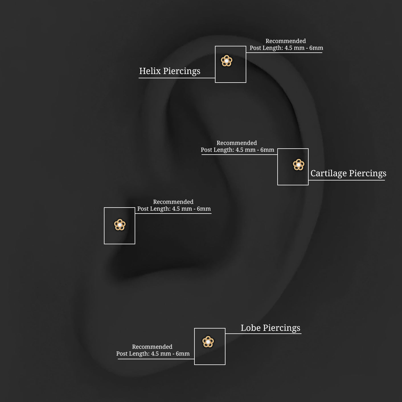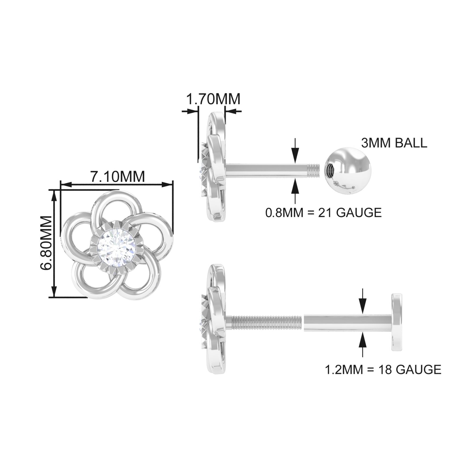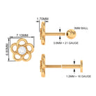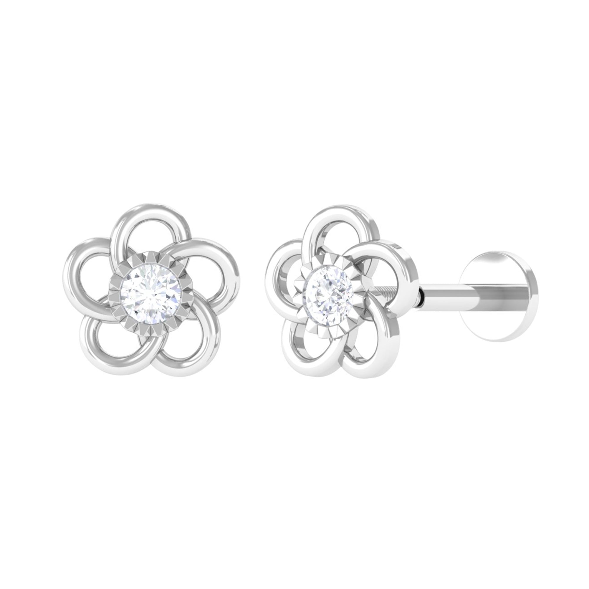 Here is our Diamond Flower Earring, which you can preserve forever. Showcasing Round Diamond secured by engraved bezel setting, crafted with Precious Metal. Wear it solo or stack this Diamond Floral Earring with simple hoops or drop earrings, and youll surely steal the spotlight. You can wear this Diamond Earring on your multiple piercings like Helix, Cartilage, Tragus, Conch, or Upper Lobe Piercing. What are you still waiting for, Grab this Piercing Earring to amp up your boring ear piercing stack look.