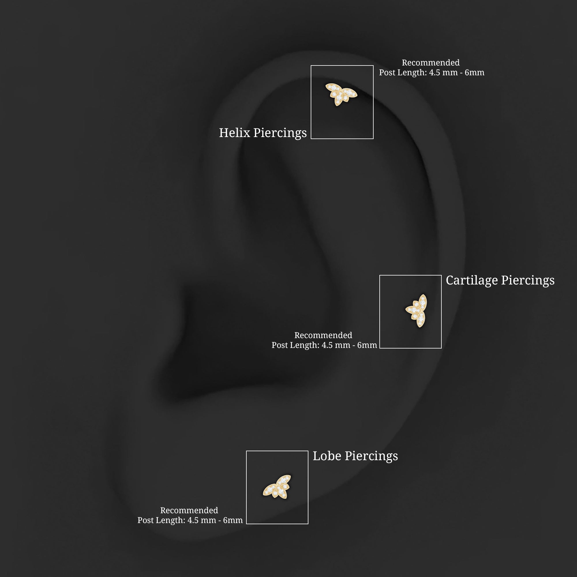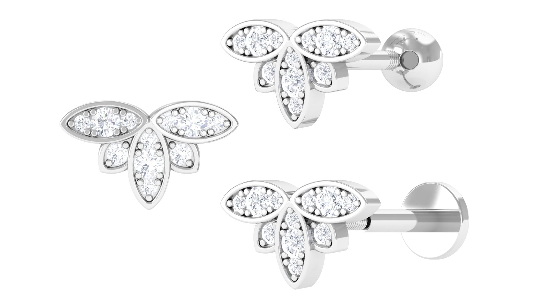 This charming and stunning Diamond Floral Earring is embellished with Round Shape Diamonds studded on a floral design. Whether you wear this Diamond Earring alone or stack it up with your other ear piercing jewelry, this earring is gonna shine forever.You can style this Diamond Flower Earring in your Helix, Cartilage, or Upper Lobe Piercing. Worried about falling off? Fret Not, the Flat Back Closure will keep it all intact with your piercing. No need to take it off, even while sleeping. If you want to add an instant touch of glamour to your ear stack, go with this Floral Earring.