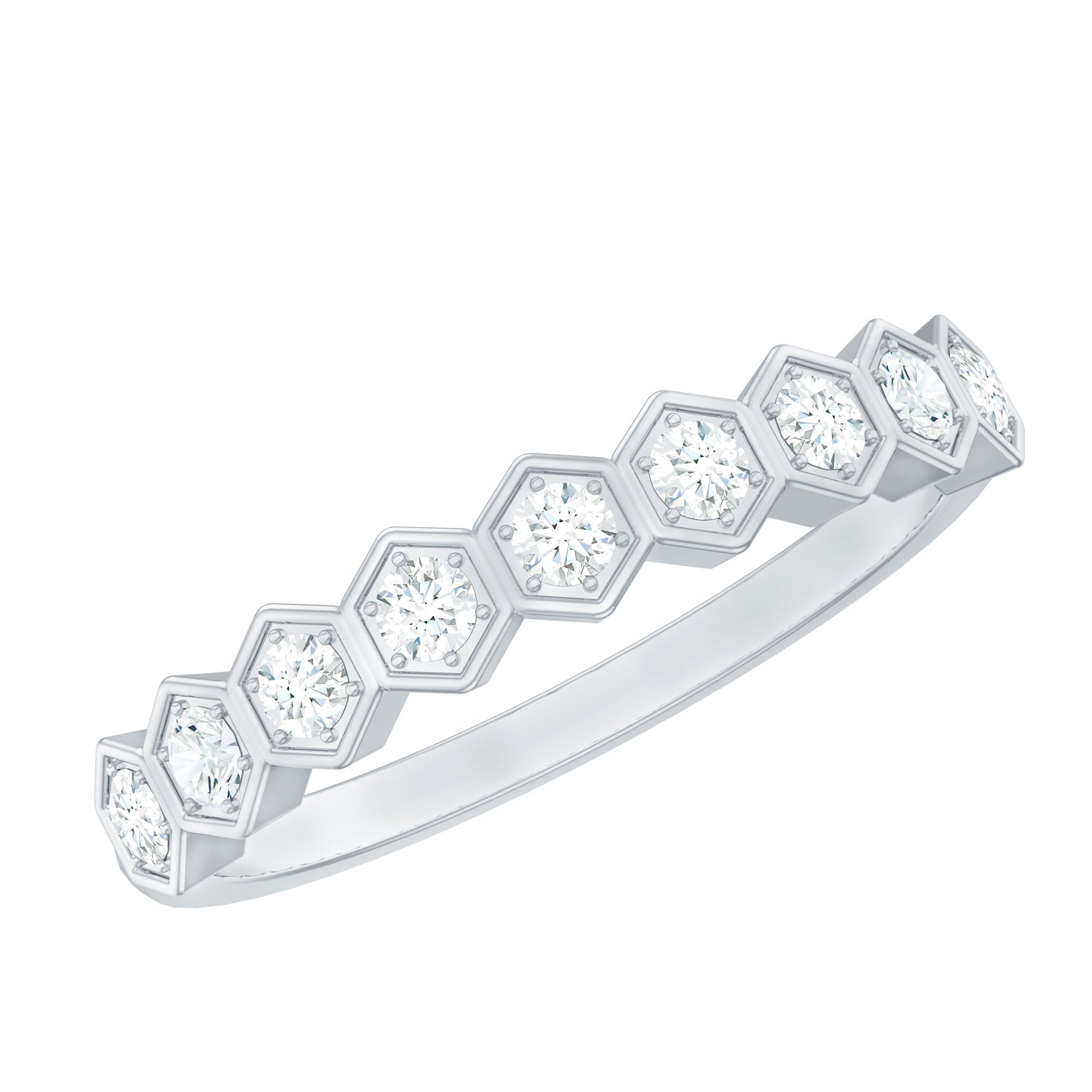 Diamond Half Eternity Ring in Hexagon Shape Frame