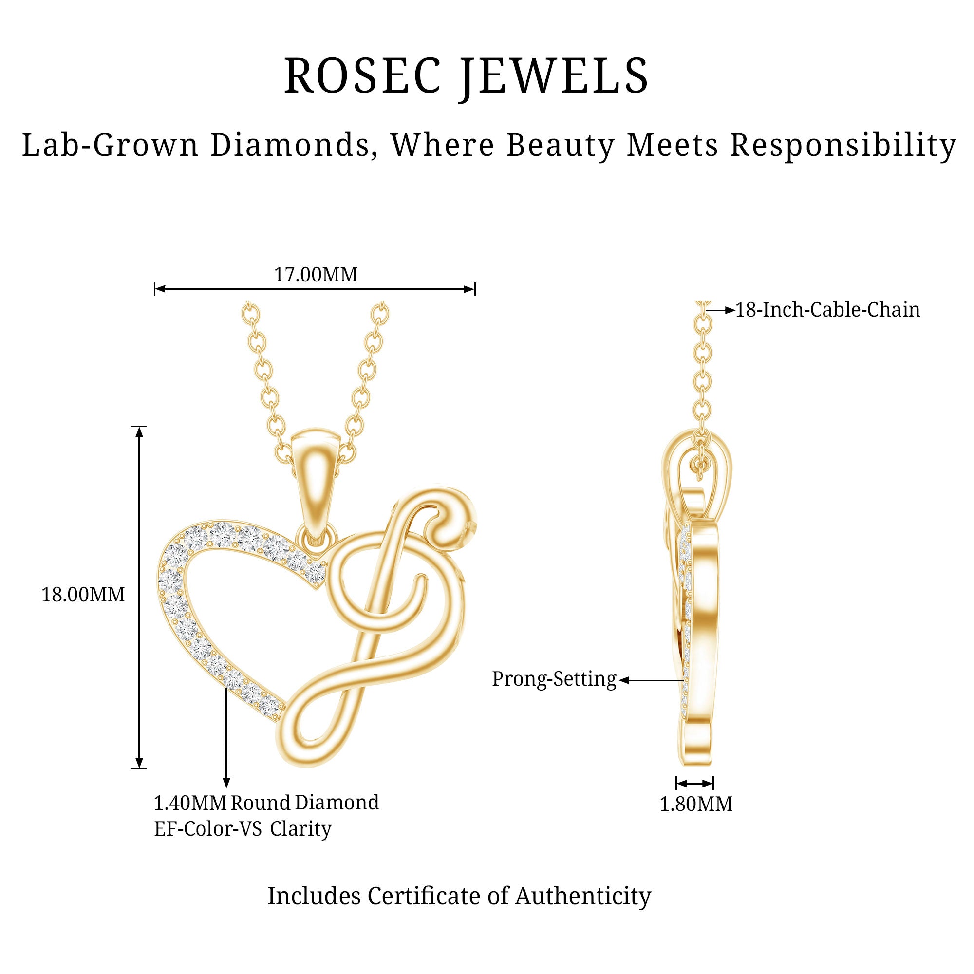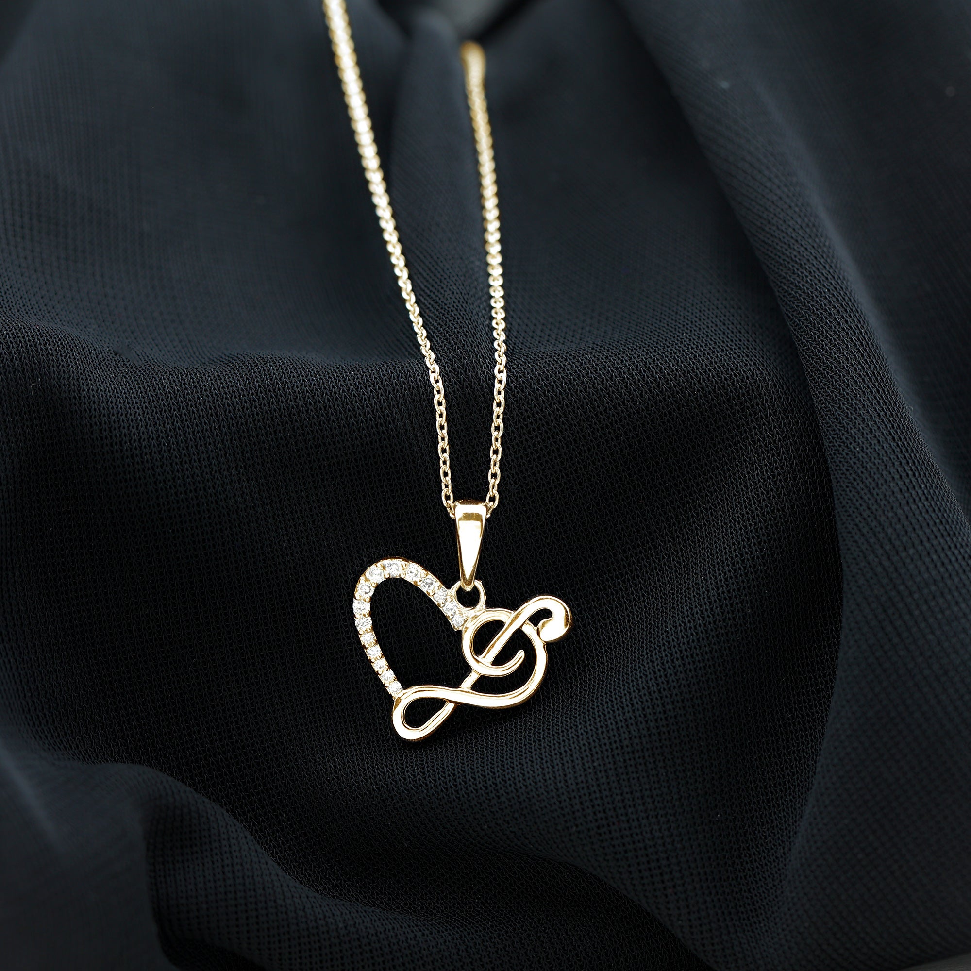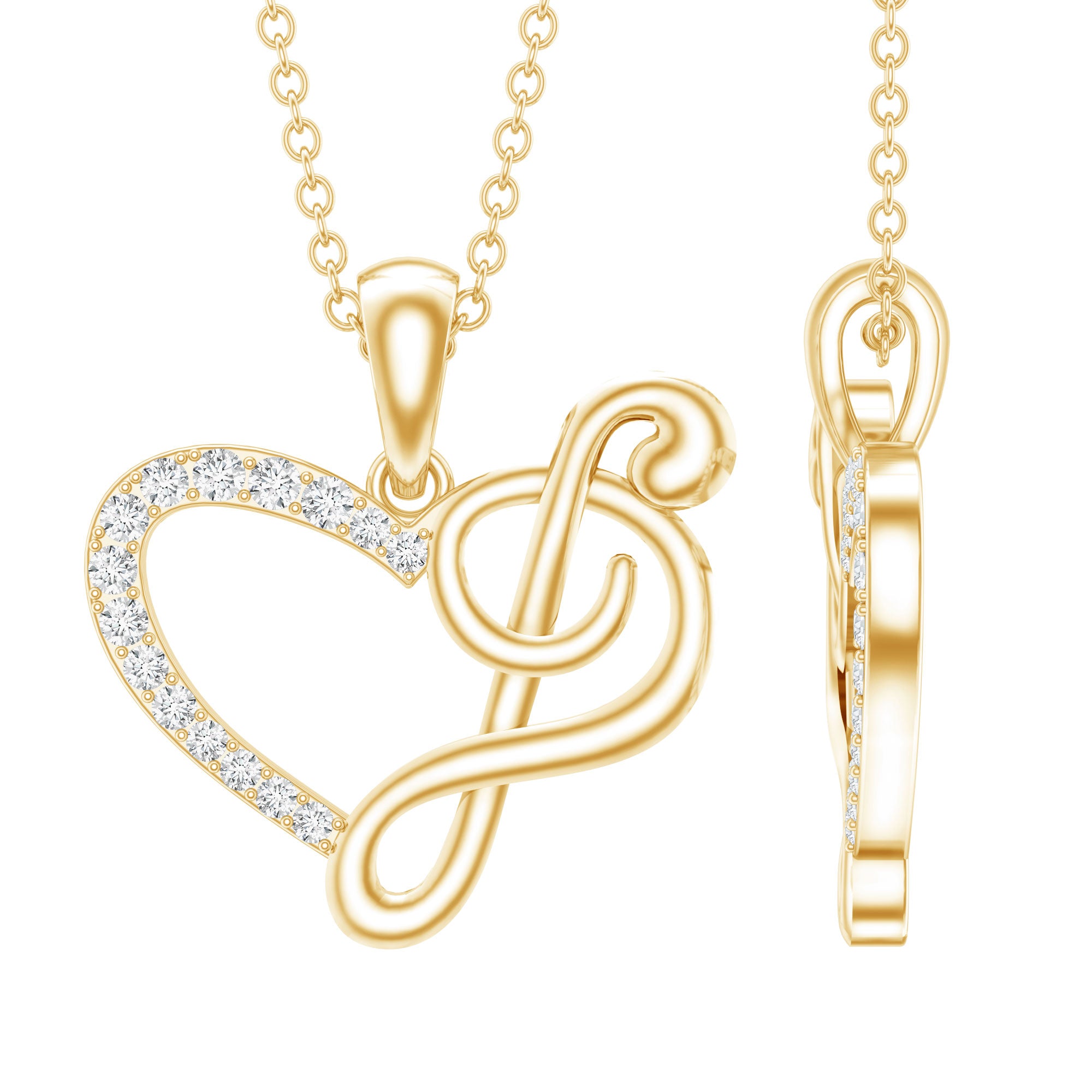 A deep love and appreciation for music is deeply intertwined with the unique and mesmerizing Diamond Heart Necklace that indicates a love in the art form. As a symphony for the spirit with a blend of passion and rhythm this Diamond Pendant celebrate the music that beats within your heart. A beautiful music note made with metal and an open heart which scintillates with an outer lining of Round brilliant cut Diamond. Dangling through a chain, this Heart Music Note Necklace is for a talented musician, a devoted music lover, or someone who simply finds joy and inspiration in melodies. It is a reminder that music has the power to lift spirits, evoke emotions, and connect us to something beautiful and profound. This beautiful combination celebrates the magic of music with the Melody Heart Necklace which is a reflection with the deep connection to the music and your heart cannot be separated with the same. It is a gift that says the heartfelt expression of love and appreciation for the music enthusiast.