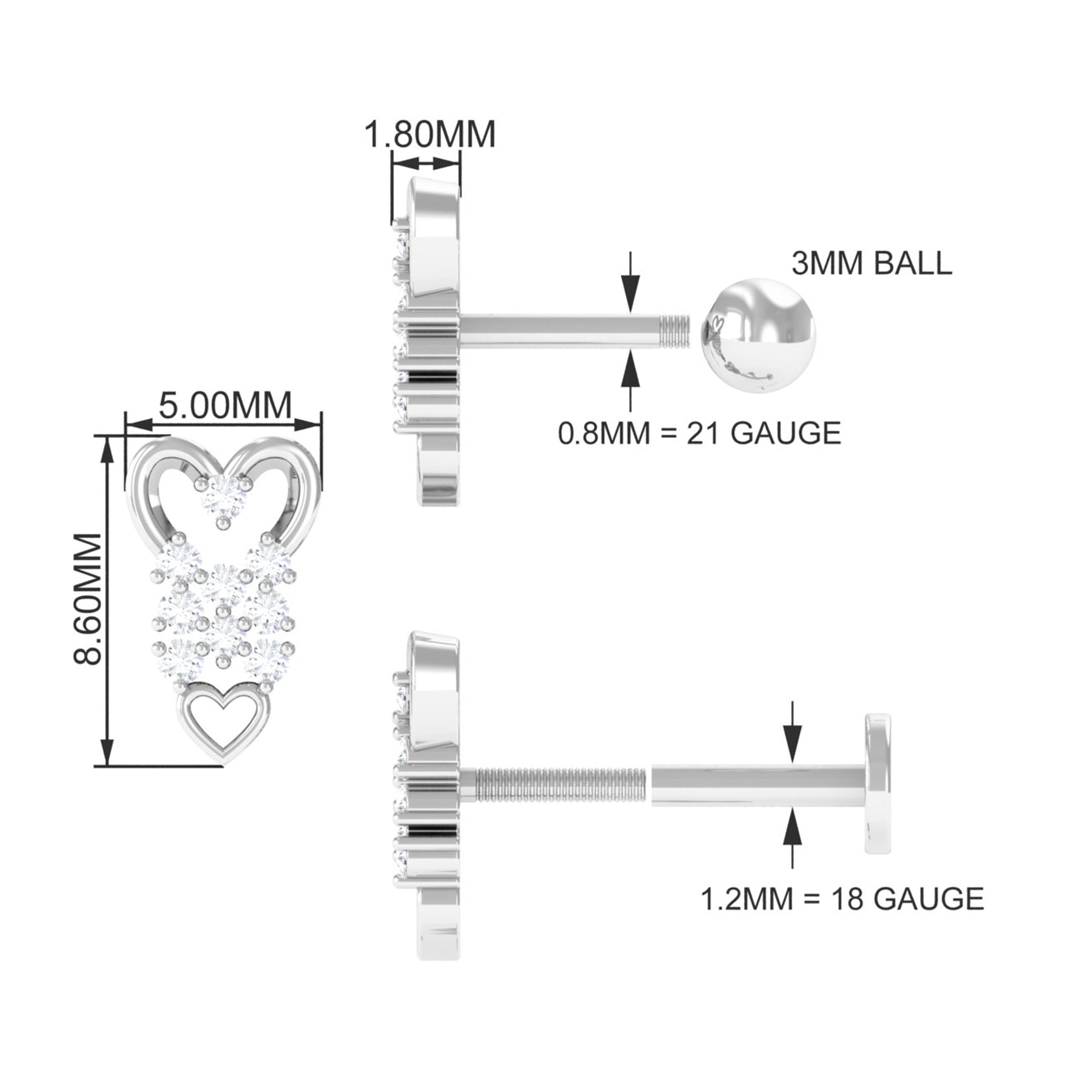 So cute, the Diamond Heart Earring is adorned with a Heart Shape Diamond secured by Prong Setting.Experience comfort at its finest with the simple back style featuring a flat back, ensuring no pokes or jabs, making it perfect for those quick naps or a full night of beauty sleep.Versatile and stylish, this Diamond Earring is designed to complement multiple piercings like Helix, Cartilage, Tragus, Conch, or Upper Lobe Piercing.Created for 24/7 wear, this heart-shaped beauty is your ideal companion for an active lifestyle. Whether you are working out, traveling, or engaged in your daily activities, wear it with confidence and radiate elegance effortlessly.