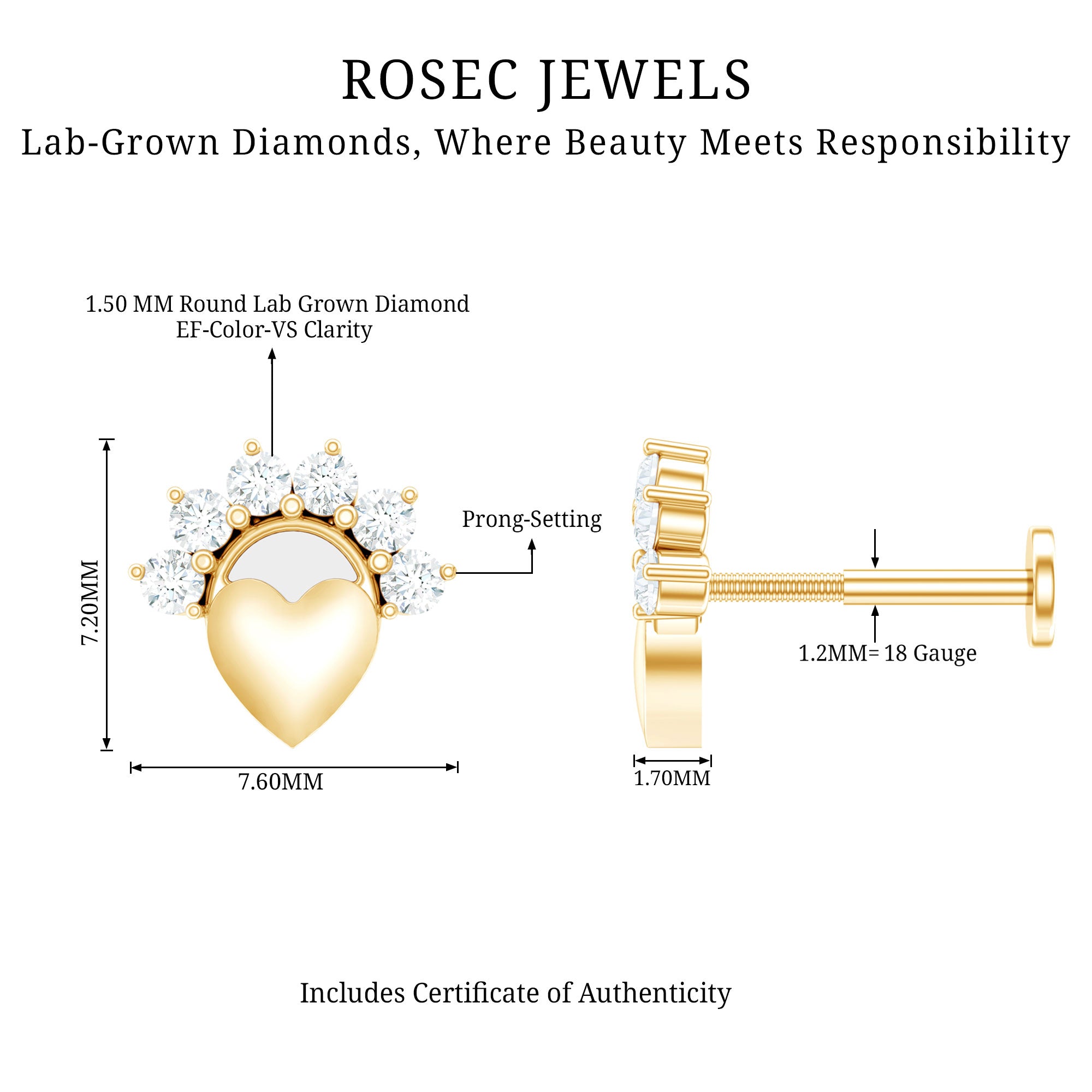 Everyone will be astonished when they will witness you flaunting this Diamond Heart Conch Earring. Bejeweled with Round Diamond in Prong Setting studded on the top of a unique heart design for an eye-catching appearance. This Diamond Earring is perfect to be worn on your Helix, Cartilage, Tragus, Conch, or Upper Lobe Piercing. The Piercing Earring is best known for its incredible charm that will complement your casual, formal, and party attire beautifully. Grab this Diamond Helix Earring for your beloved wife as an anniversary, birthday, or mothers day gift, and wait for her priceless reaction.