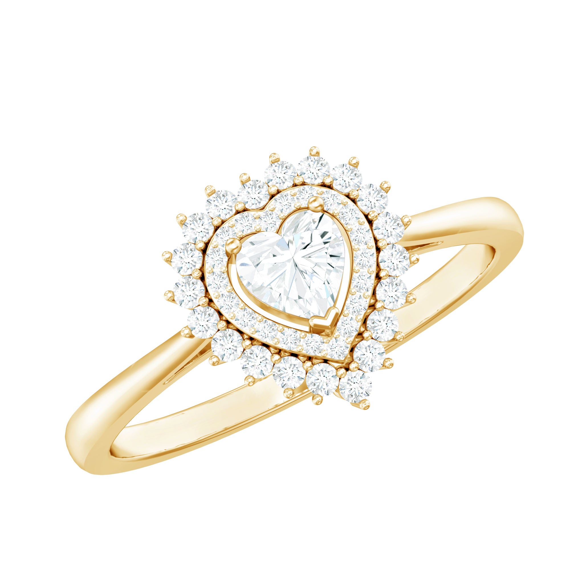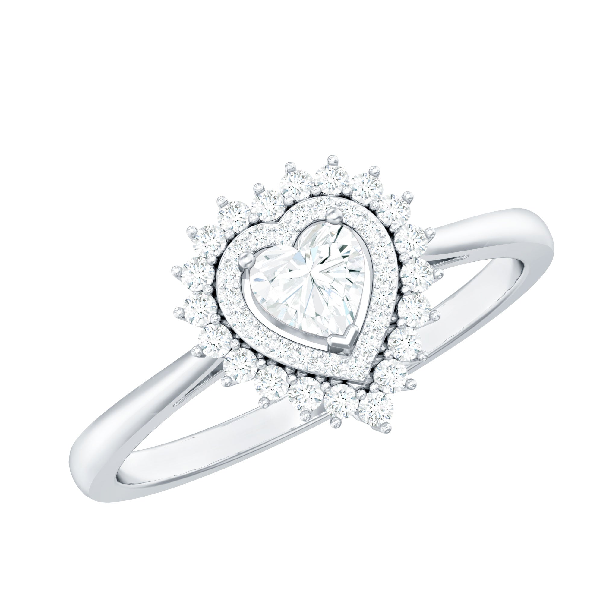 We all know that nothing expresses love quite like a diamond, but a Diamond Heart Ring might just shout it even louder. It features a 4 MM heart-shaped diamond held in prongs, encircled by round cut diamonds in a stunning double halo design, perfectly capturing the romantic feelings tied to love and enhancing the center stones size and sparkle in a classy way. With its timeless and deep symbolism, this Diamond Engagement Ring embodies your unique relationship and tells your love story. Made with HI-SI Quality Diamonds, it boasts impressive clarity and brilliance, making it an ideal emblem of everlasting love. Whether it is a pre-engagement present or a way to reaffirm your love and commitment, this Heart Shaped Engagement Ring symbolizes a promise, perfect for celebrating special moments or simply as a daily reminder of the vows made and the love that keeps blossoming. This Halo Engagement Ring comes in various metal colors and is available in different ring sizes. It also includes a certificate of authenticity for the gemstones and is beautifully packaged in a luxurious storage box.