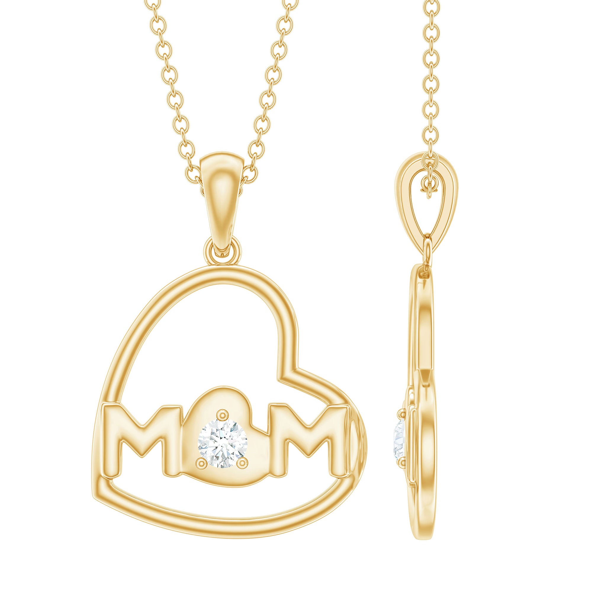 Diamond Heart Pendant for Mom in Gold