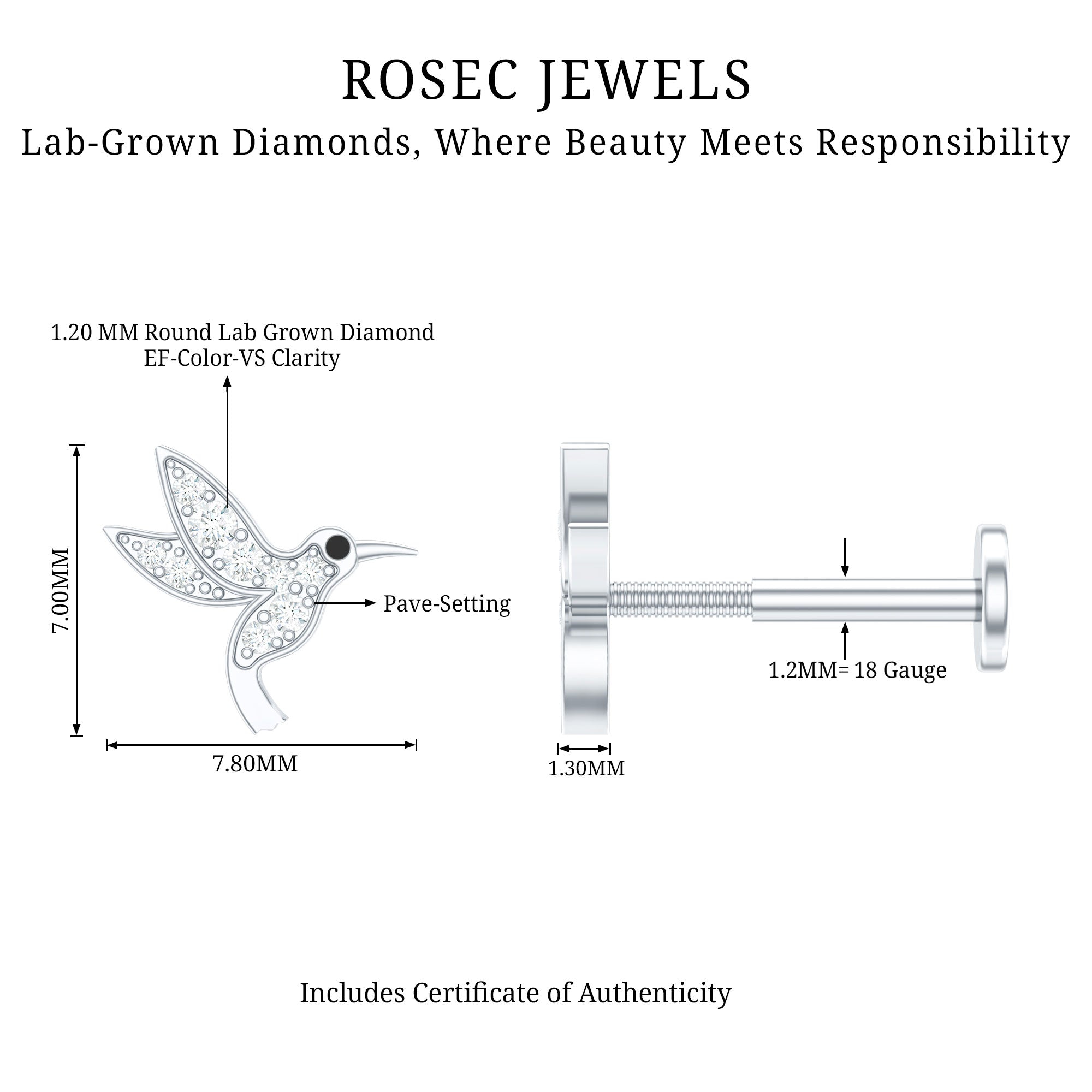 Love a playful and chic look in your earring stack? Then you need this Diamond Hummingbird Earring.This earring features a cute hummingbird bird design, encrusted with sparkling Diamonds, making this earpiece more unique and special.Grab this Piercing Earring to create the ear stack of your dreams! This earring will be ideal for your Helix, Cartilage, Conch, or Upper Lobe Piercing. Surprise your special ones with this Diamond Earring to make them special and loved.