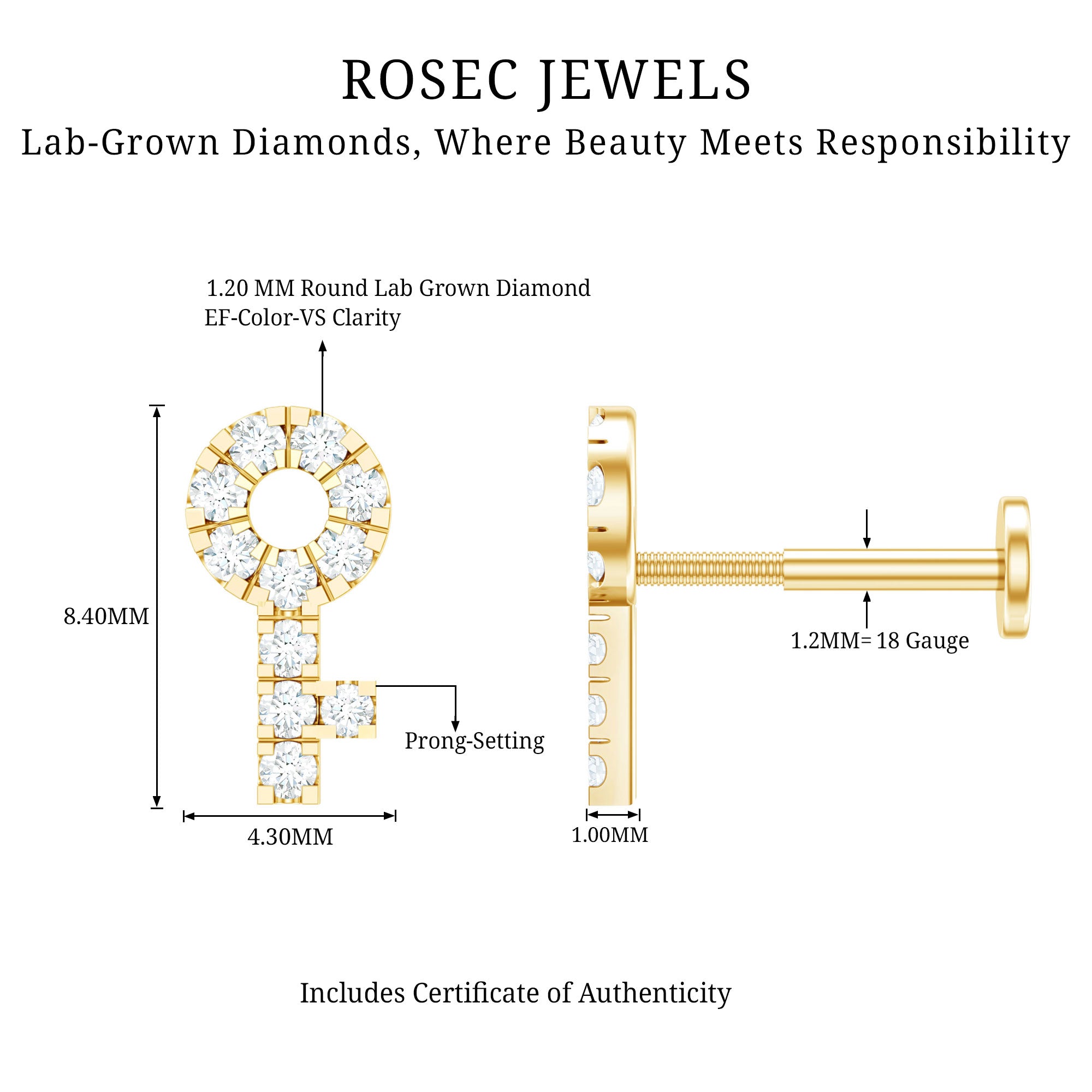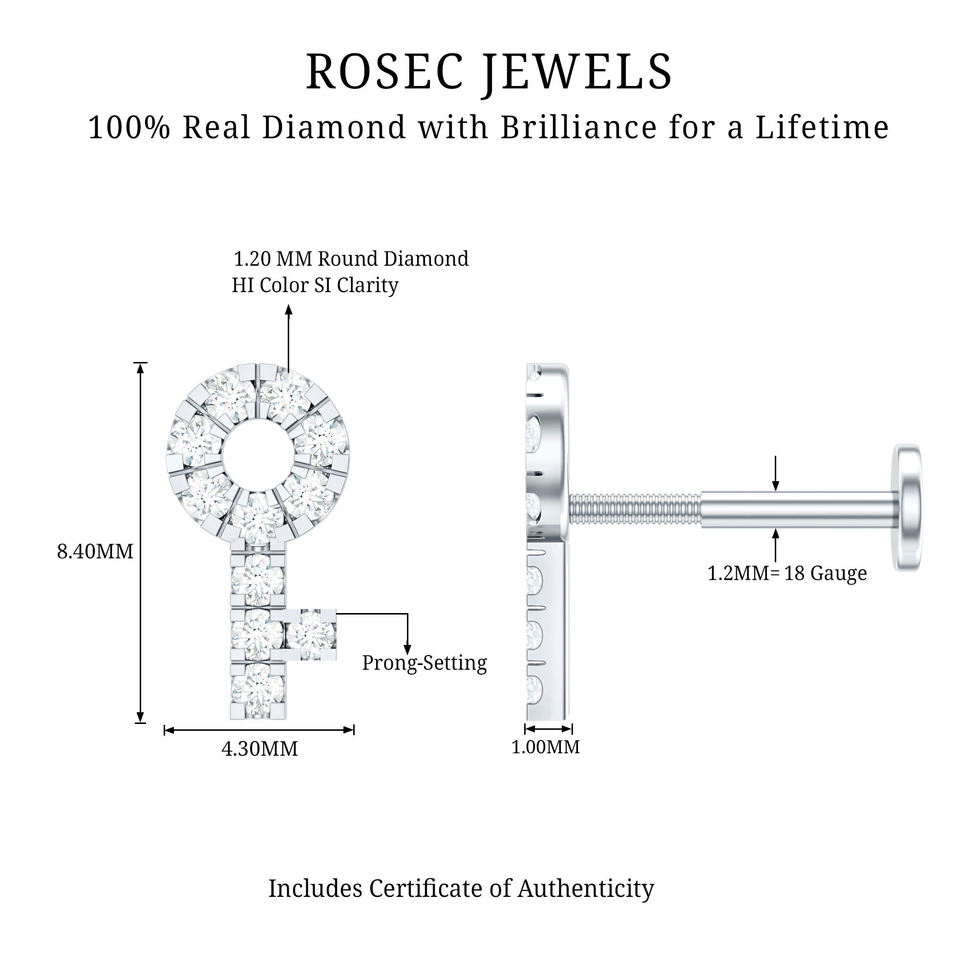 Enhance your styling with our Diamond Tragus Earring, a symbol of elegance and uniqueness.Crafted in the shape of a vintage key, this Tragus Earring is adorned with shimmering Diamonds.Ideal for Tragus, Cartilage, or Helix piercings, this earring adds a touch of refined beauty to any ensemble.The key shape offers a subtle nod to mystery, making it the perfect accessory for any occasion.