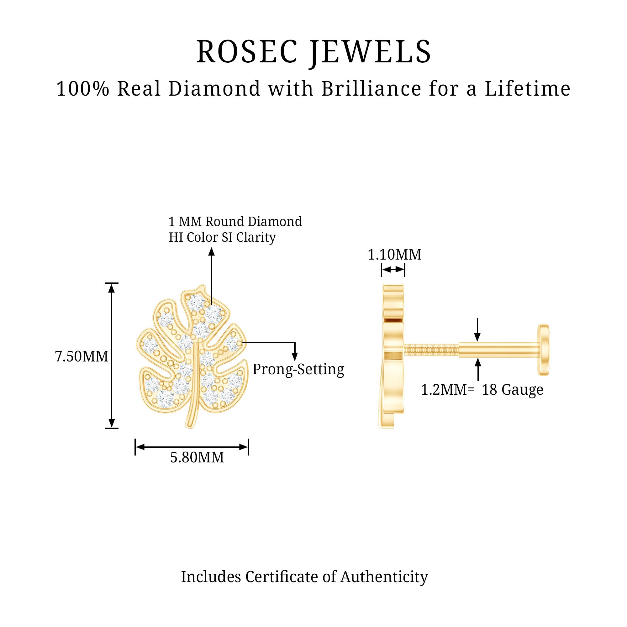 Let Nature be your MUSE! This petite and sparking Diamond Leaf Earring showcases twinkling Round Diamonds secured by Prong Setting studded on a leaf design. This Diamond Leaf Earring is perfect to be worn on your Helix, Cartilage, Conch, or Upper Lobe Piercing. The Piercing Earring is best known for its incredible charm that will complement your casual, formal, and party attire beautifully. Grab this Diamond Helix Earring for your beloved wife as an anniversary, birthday, or Mothers Day gift, and wait for her priceless reaction.