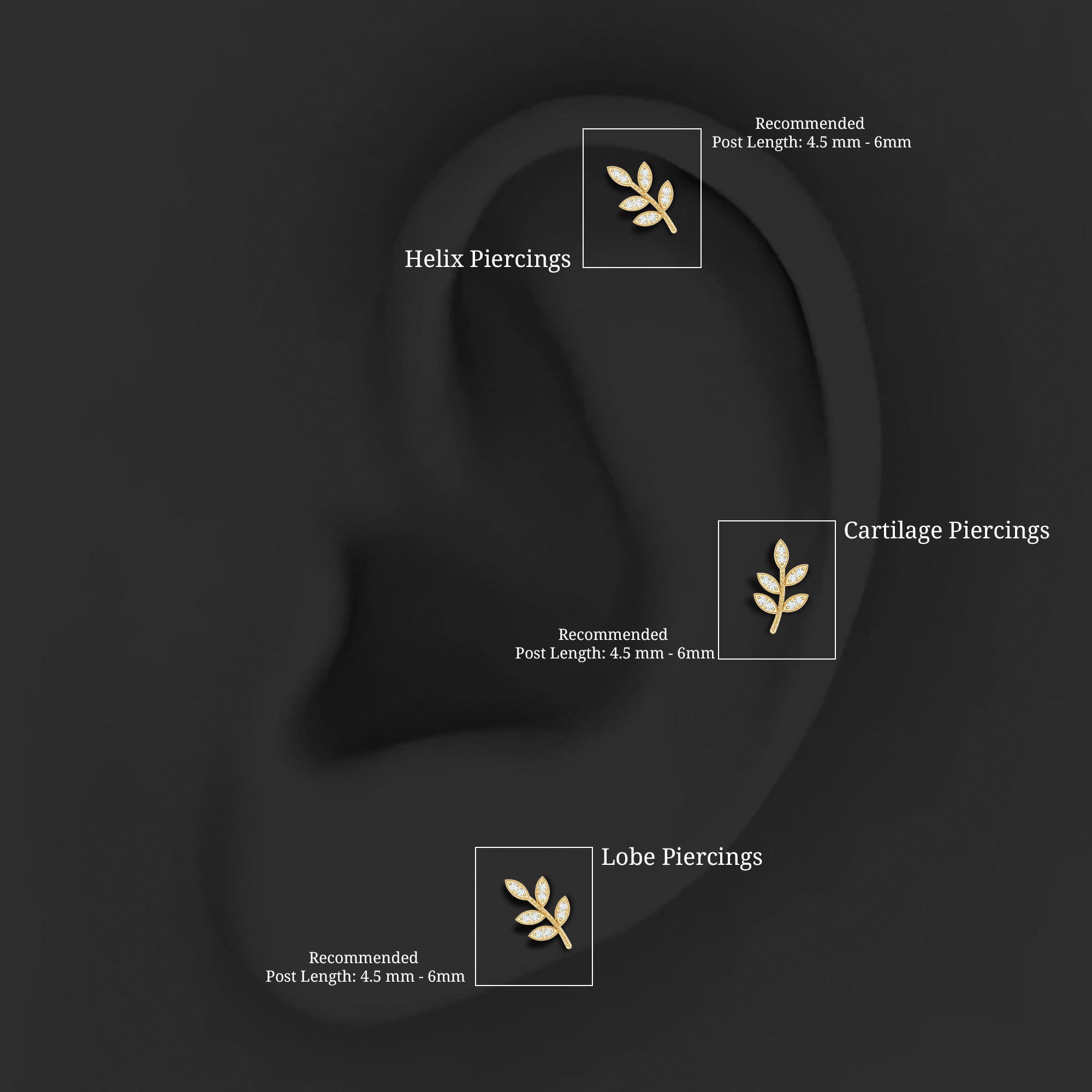 Inspired by nature – introducing the Diamond Leaf Earring! Showcasing sparkling Round Diamonds studded on the leaf design. This bling is all about that snug fit in your Cartilage, Helix, or Upper Lobe Piercing, the simple flat back closure will keep it locked in place.Whether you are brunching with the crew or spicing up date night, our Leaf Earring is your ride-or-die accessory. Get ready to slay, and let the leaves do the talking!Make your special ones day extra-lit with this stunning Piercing Earring. Its the ultimate gift for birthdays or anniversaries.