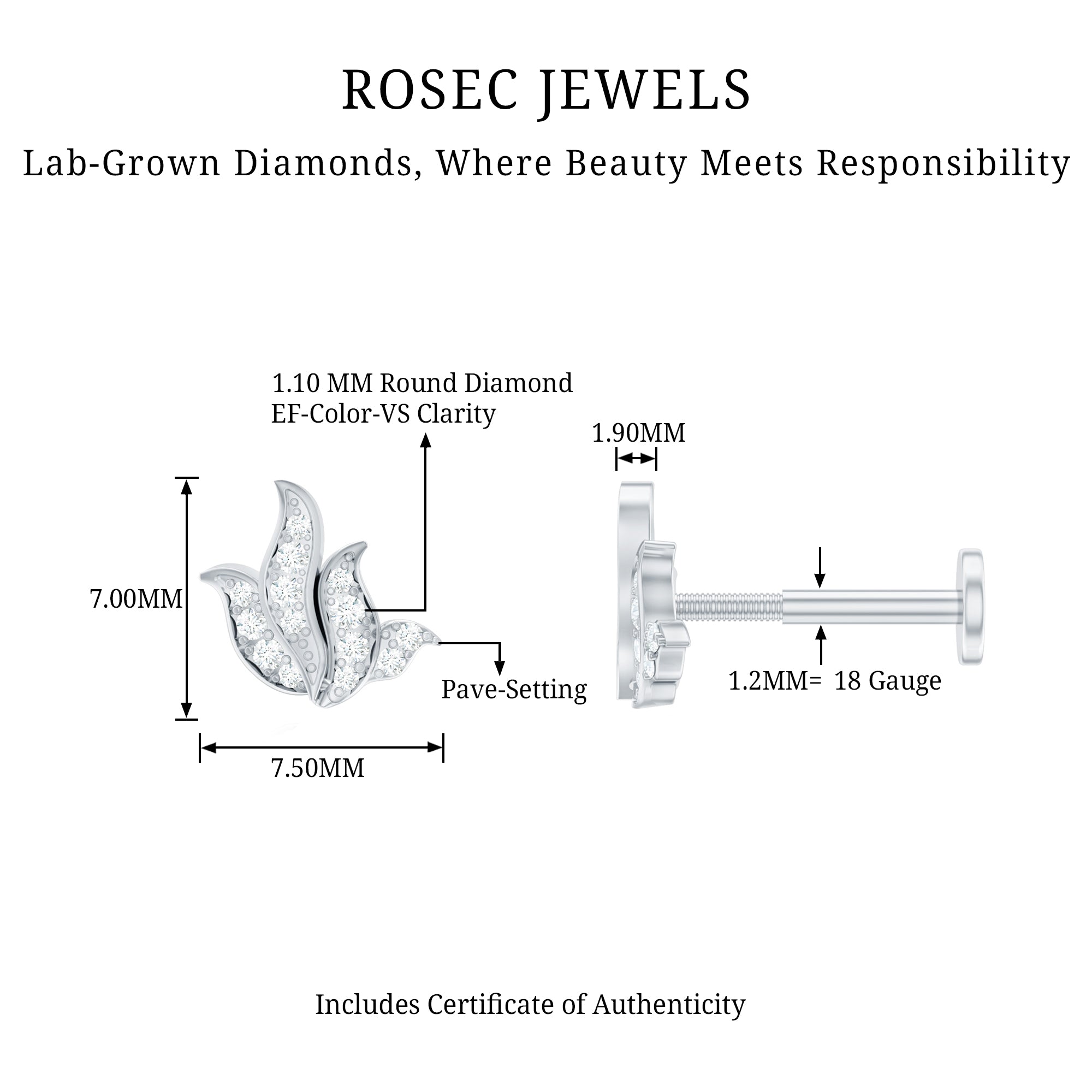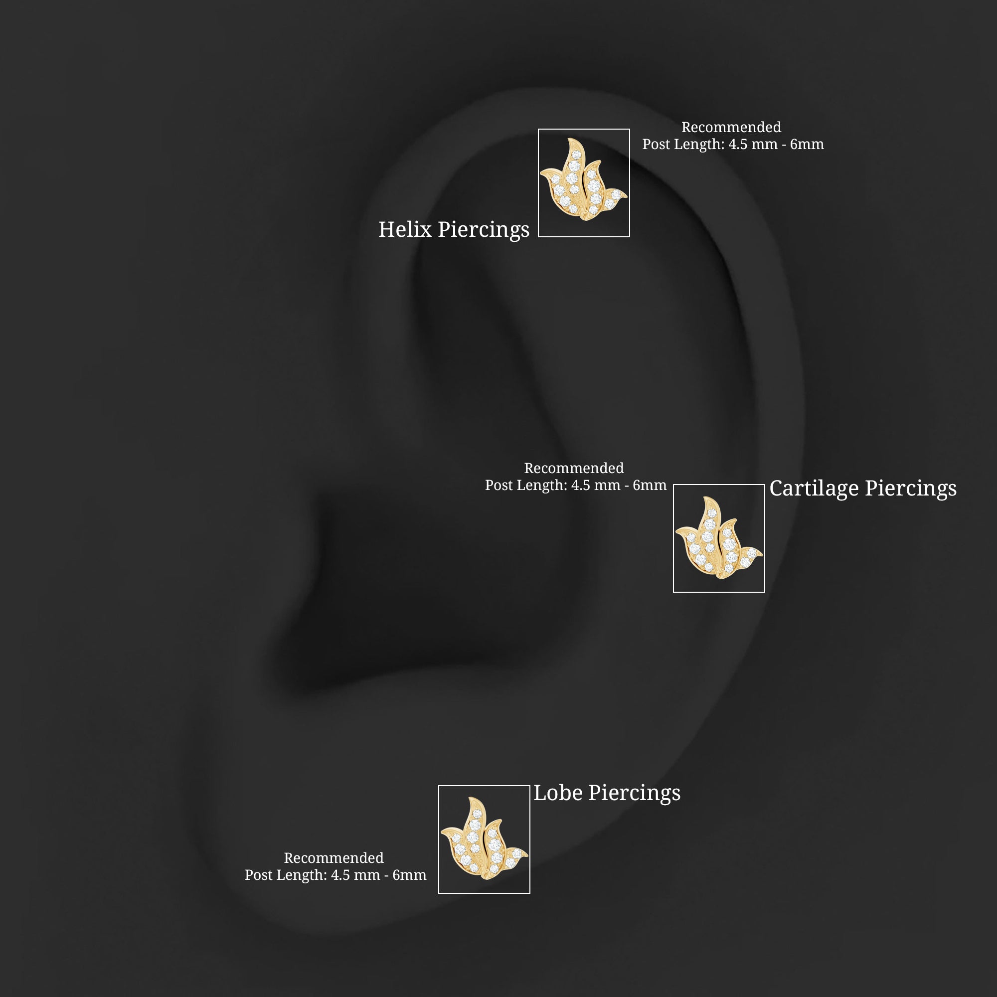 Let your beauty bloom with the stunning Diamond Leaf Earring! Elevate your look with this Nature-Inspired dazzler, adorned with Round Diamonds in a Prong Setting on a Leaf Branch Design. Style this radiant Diamond Earring on your Helix, Cartilage, or Upper Lobe Piercing, featuring a Flat Back Closure for that snug and secure fit. Because why settle for ordinary when your partner deserves extraordinary? Gift your leading lady a symbol of affection with our breathtaking Diamond Leaf Earring. Its time to let her shine!