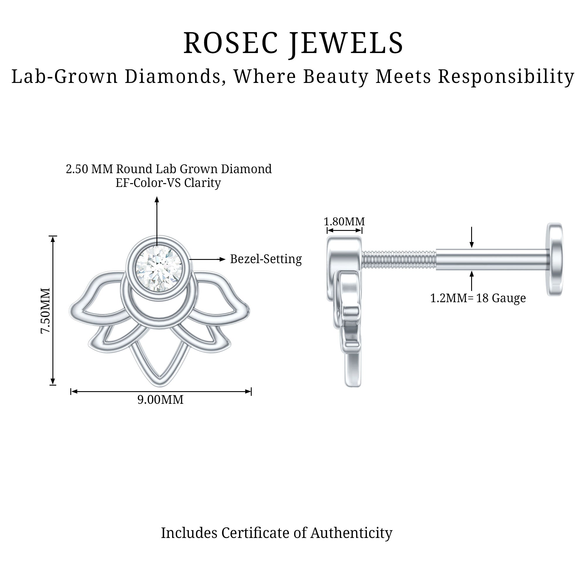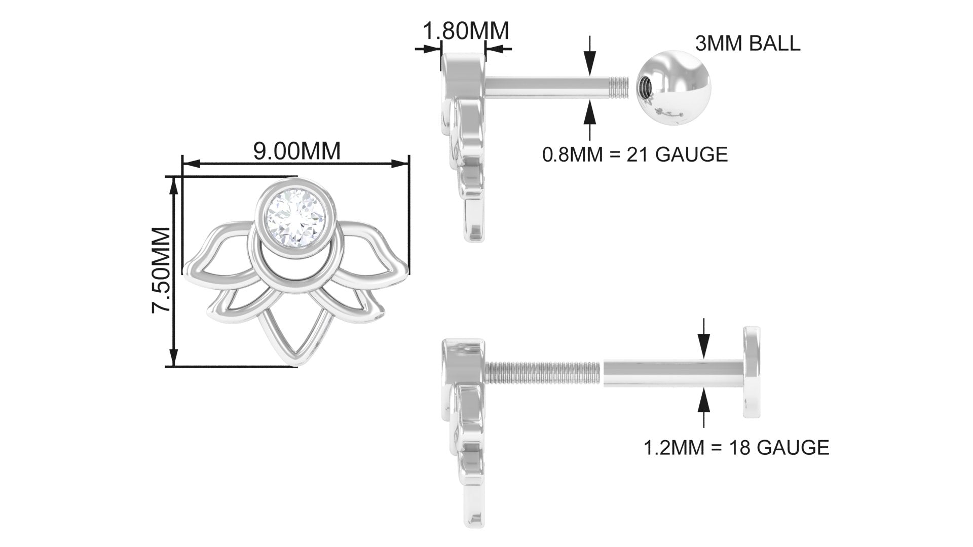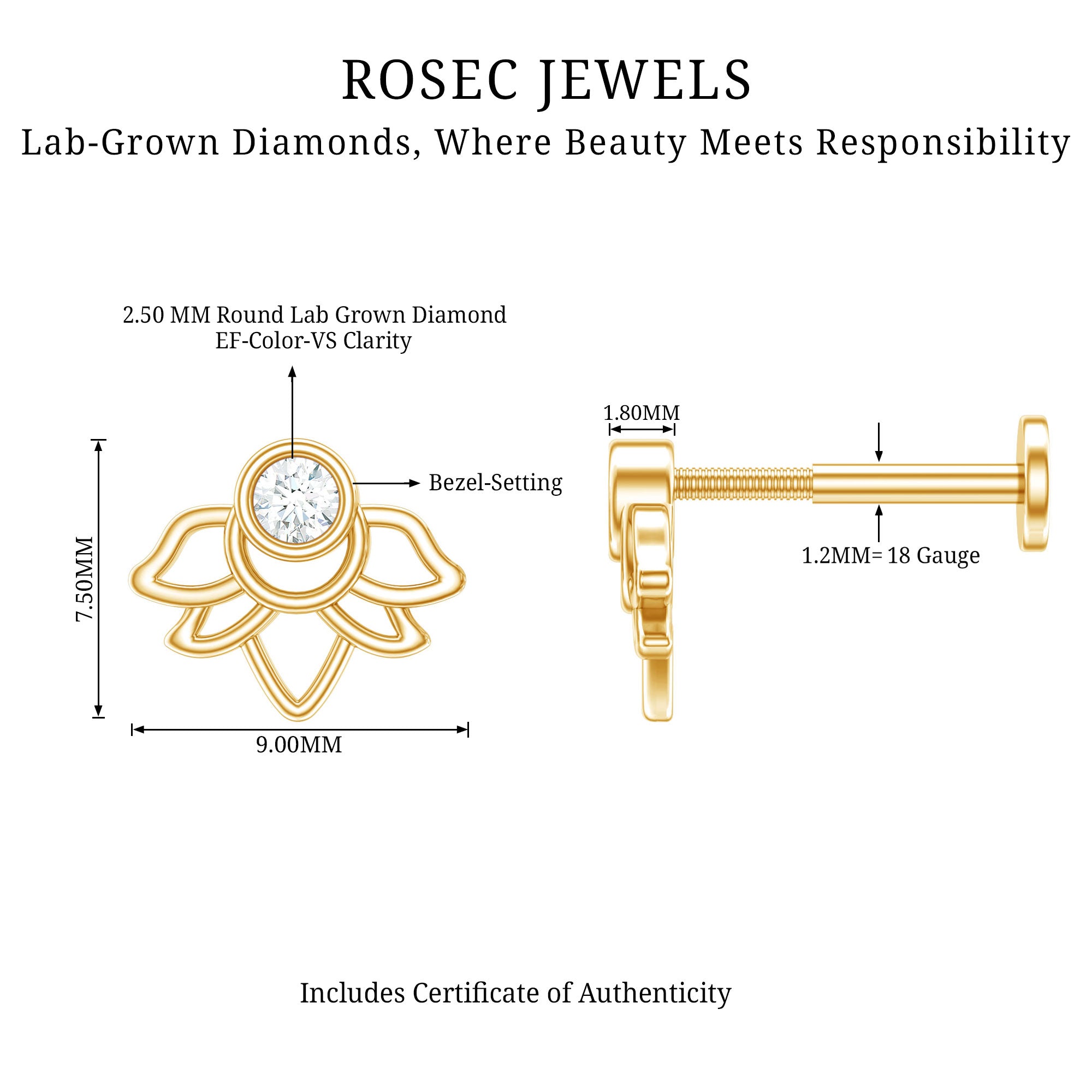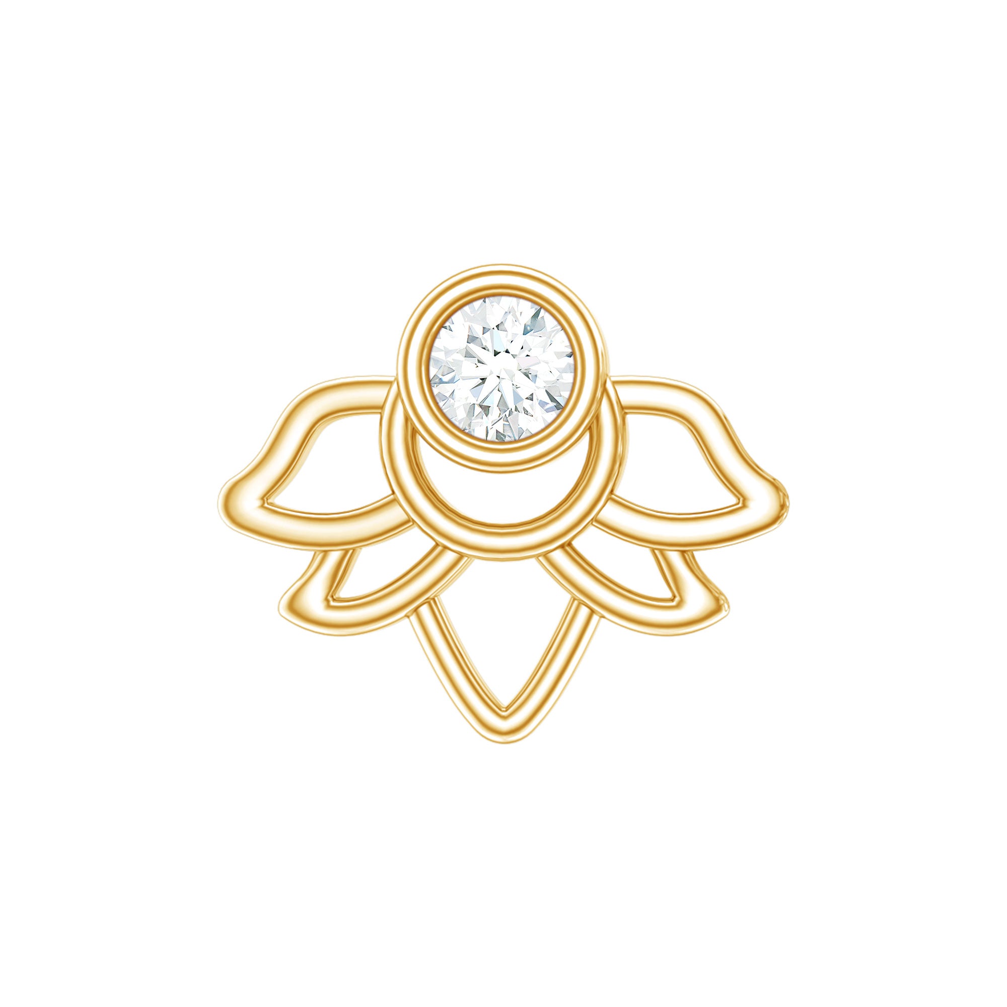 Floral inspired piercing earrings have become extremely popular, and they are more fashionable than ever before. If you are searching for jewelry to enhance your look with a layered design, consider this Diamond Floral Earring. This beautiful earring features a sparkling round diamond set in bezel setting set in a gold flower motif. Now, imagine the beauty of a flower earring designed to be a fit for your Helix, Cartilage, or Upper Lobe Piercing. This exquisite piece of jewelry can be the start of a collection of piercing earrings.