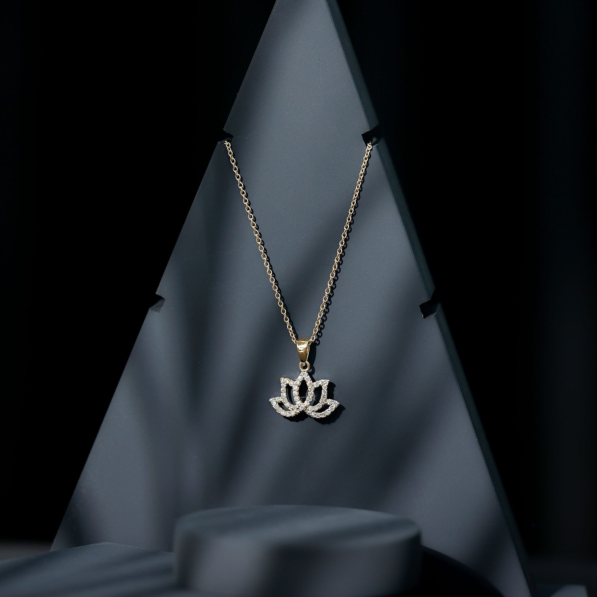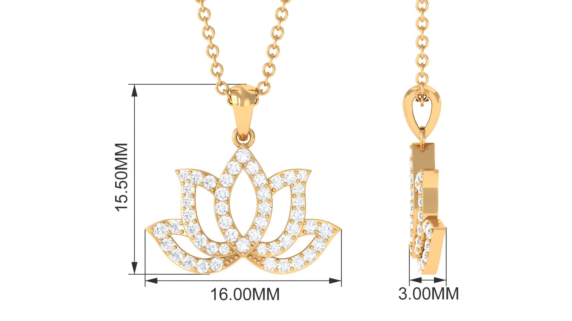 Add a touch of nature-inspired elegance to your look with this stunning Diamond Lotus Necklace. The pendant features a delicate lotus flower design, expertly crafted in gleaming metal and encrusted with a sparkling Round Diamond in Pave Setting. This elegant Lotus Flower Necklace is perfect for adding a touch of sophistication and glamour to any outfit, and makes an ideal gift for someone special. This Diamond Lotus Floral Pendant Necklace is sure to captivate with its intricate design and timeless beauty. Let its shimmering diamonds and delicate floral motif elevate your style and make you feel like a true natural beauty. The simplicity of the Diamond Necklace for Women is punctuated with charm and serenity that radiates wherever you go. The luxury, drama and mystery of this Diamond Pendant Necklace is designed to evoke the spirit of the show in a fun and playful way. So, shimmer and sparkle just as the lotus comes up from the bud, which is pure when it opens. Symbolizing enlightenment and determination, this Real Diamond Necklace combines the timeless beauty of the lotus flower with the captivating beauty of Natural Diamond.