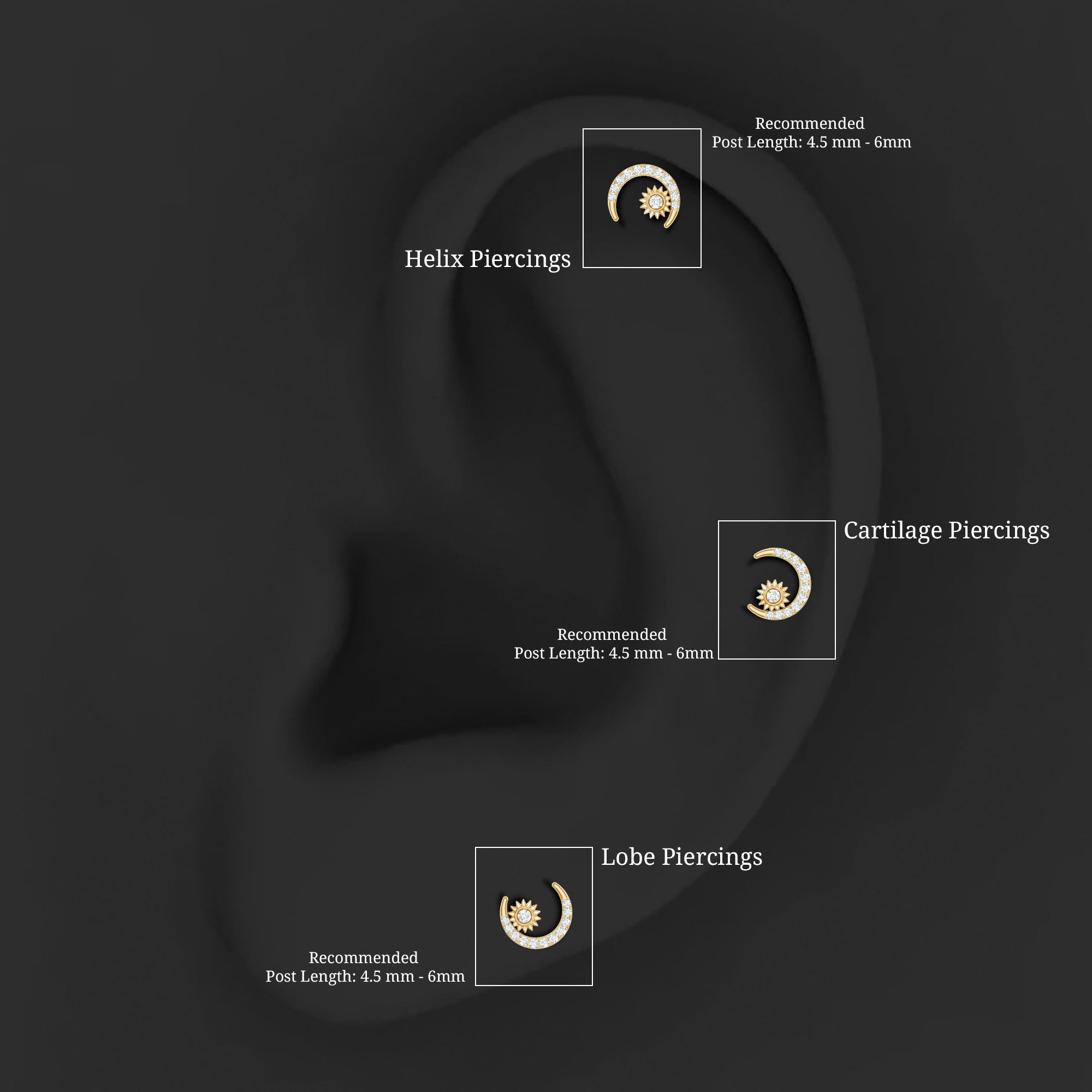 This Diamond Moon and Star Helix Earring is an eye-catching standalone piece of jewelry. It features petite Round Diamond shimmer on the crescent moon design, while a diamond twinkles on the star. Board of ordinary ear piercing jewelry? Grab this Crescent Moon Earring, which can be worn on your Helix, Conch, Cartilage, or Upper Lobe Piercing. Style this Celestial Earring with your casual or dressy attires, and make everyone a fan of your style. This Diamond Moon Earring makes a wonderful gift for your beloved ones. Present it as a birthday gift, anniversary gift, holiday gift, or christmas gift, she will surely adore it.