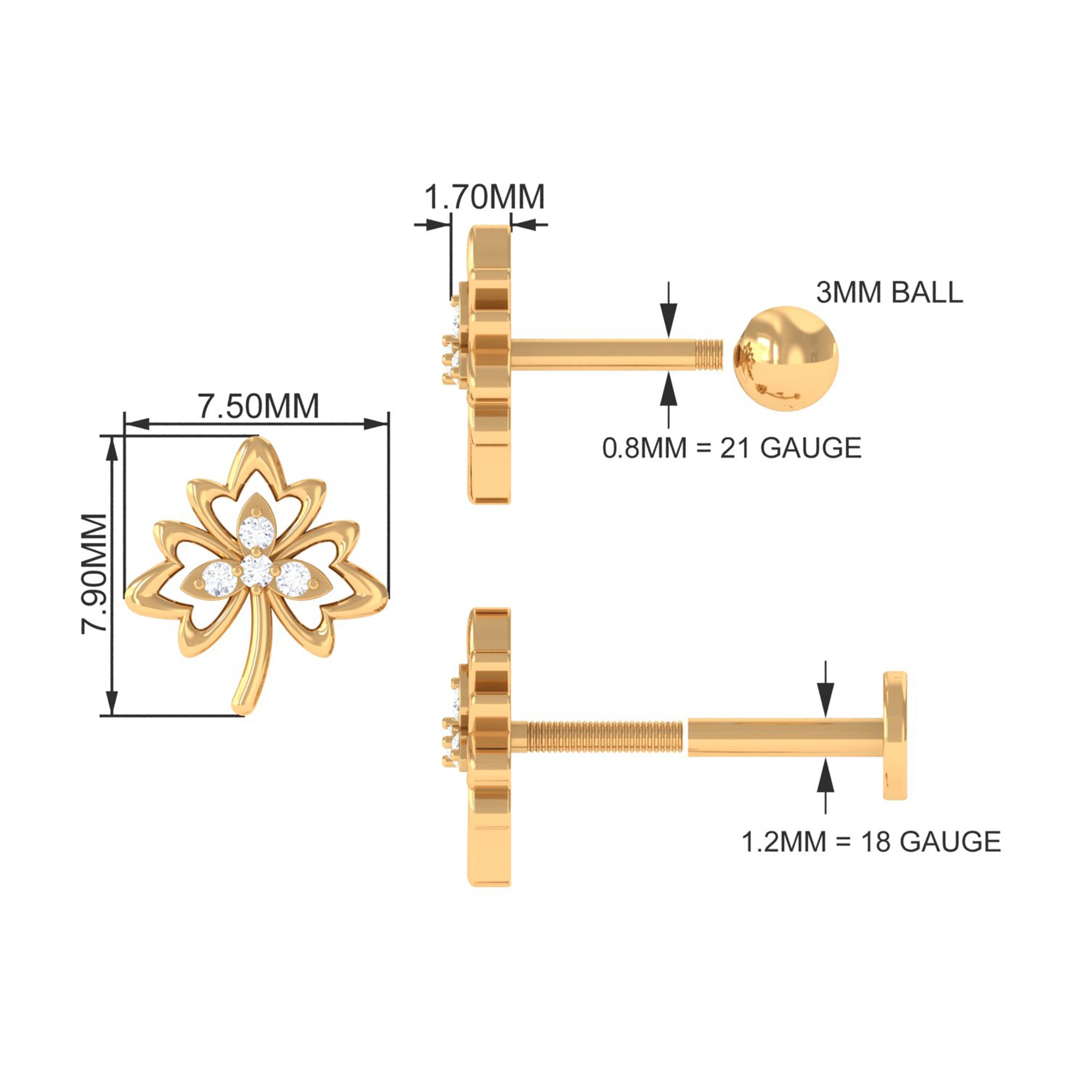 Inspired by nature, this trendy Diamond Earring radiates beauty and style. Crafted in hallmarked metal, each gorgeous earring features Round Diamond studded on the leaf design. The Flat Back Closure helps to keep the Diamond Helix Earring in place and it can be worn on your Helix, Cartilage, or Upper Lobe Piercing.Let your style flourish as you flaunt this Leaf Earring, leaving a lasting impression with its radiant shine. Elevate your look by pairing this Cartilage Earring with other ear jewelry, creating a dazzling ensemble thats sure to steal the spotlight at any party.
