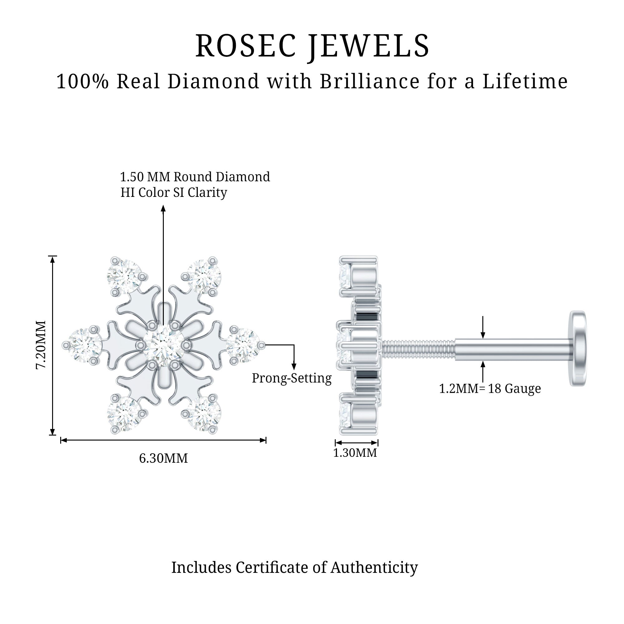Embrace the unique beauty of snowflakes with this exquisite Diamond Snowflake Earring. This earpiece features a stunning snowflake design encrusted with dazzling round Diamonds in prong setting. This Snowflake Earring is uniquely designed to match your persona. You can wear this earring on your multiple piercings like Upper Lobe, Conch, Cartilage, or Helix Piercing to add a sparkling effect to your look.Surprise your loved one with this amazing earring, a thoughtful and stylish gesture to celebrate any special moment.