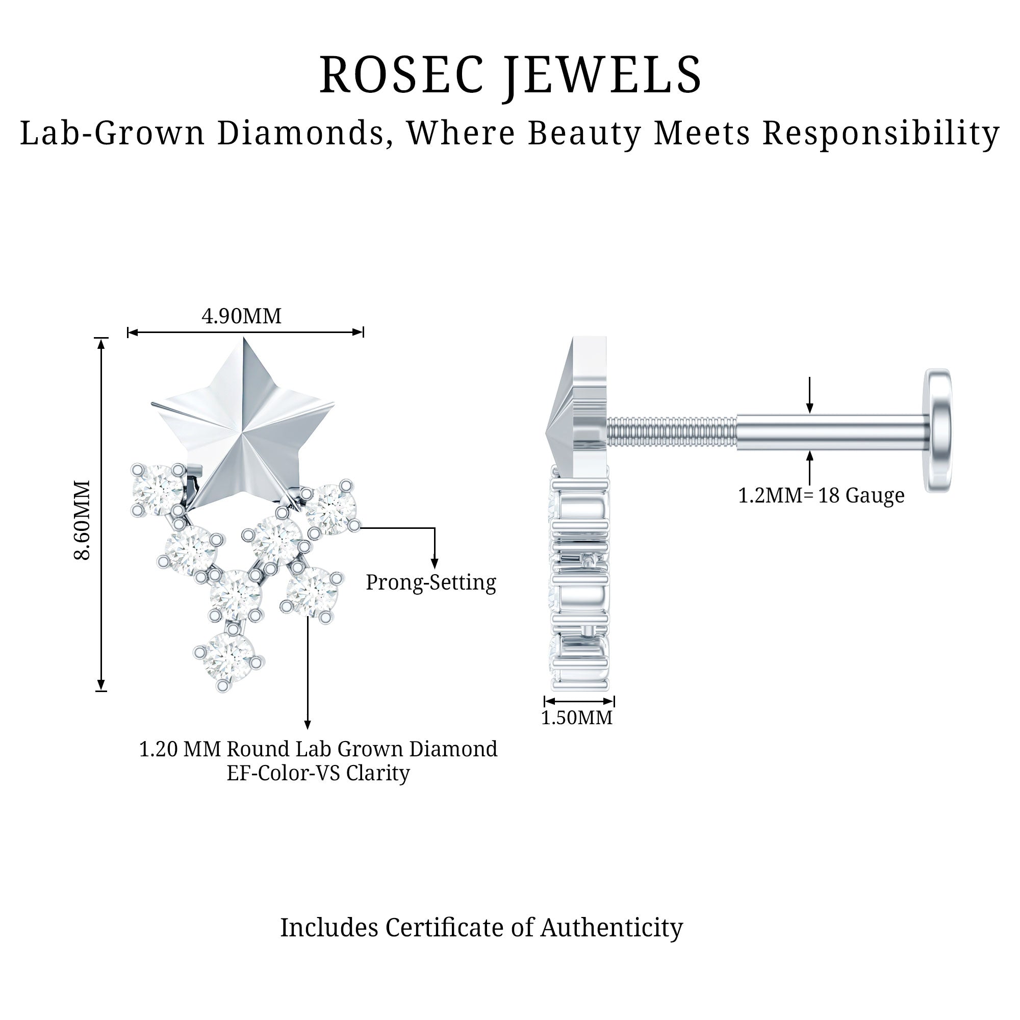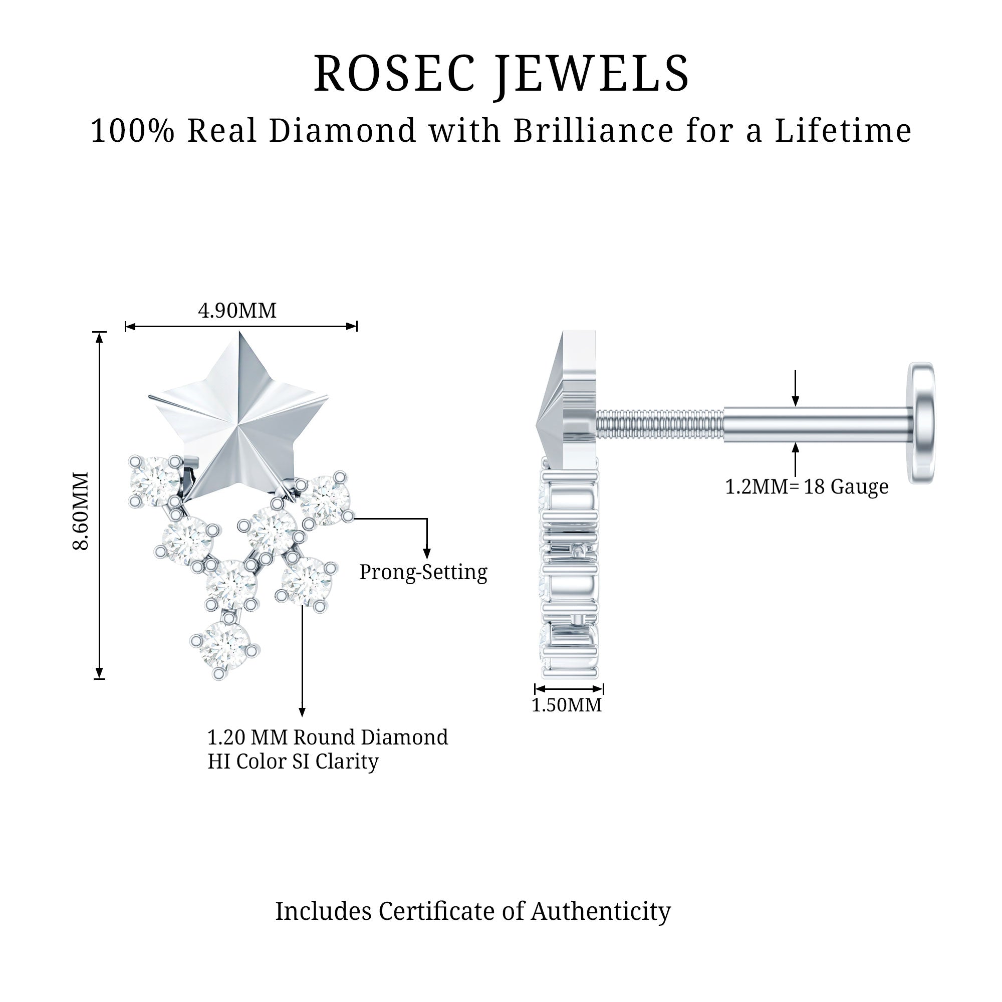Get yourself a star treatment with our alluring and sparkly Diamond Star Celestial Earring.This earring showcases Round Shape Diamonds set in Prong Setting and features a star design on the top, adding a burst of celestial beauty!This Piercing Earring is the perfect mix of minimalistic and suave. Style it on your Helix, Cartilage, Conch, Tragus, or Upper Lobe Piercing.By teaming this Diamond Earring with a pair of hoops, youll ace the stack look. This Celestial Earring is what you need to add to your daily rotation to ensure you look effortlessly elegant every day.