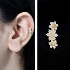 Diamond Three Flower Crawler Earring for Helix Piercing