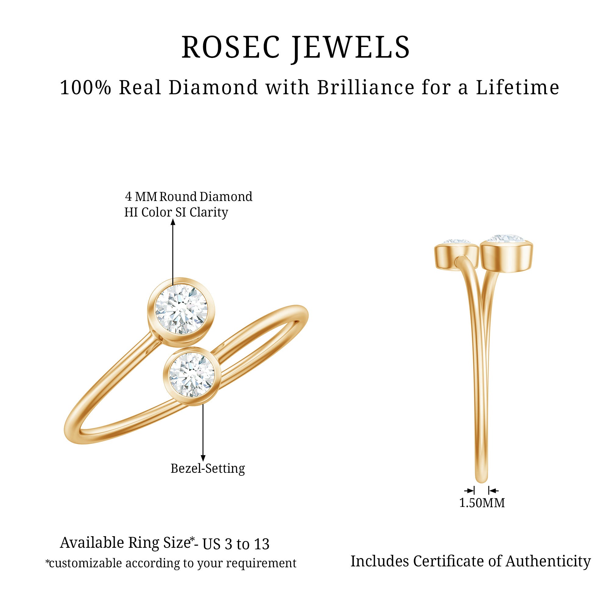 Unique and meaningful, this Diamond 2 Stone Ring symbolizes the love and connection between the individuals, making them a perfect choice for engagements or just because. Celebrating the shared journey, this Ring is adorned with Two Round Shape Diamond in Bezel Setting, along with a curvy bypass shank. This Simple Diamond Ring with intricate details perfectly suits every taste. Providing a sleek and modern aesthetic, this Toi Et Moi Ring has a captivating charm, which is sure to leave a lasting impression. As a symbol of unity and love, it has an enduring appeal with the iconic ring design. Truly embody your love and commitment, this Bezel Set Diamond Ring, with symbolism and beauty. A bold statement with an eye-catching moment, symbolizing love and romance. Dazzle with the enchanting refinement of this Minimalist Promise Ring has luxury that ensures brilliance from every angle. So, falling in love with this Diamond Promise Ring adds a romantic touch that makes it a timeless choice for every modern bride, depicting the meeting of two souls.