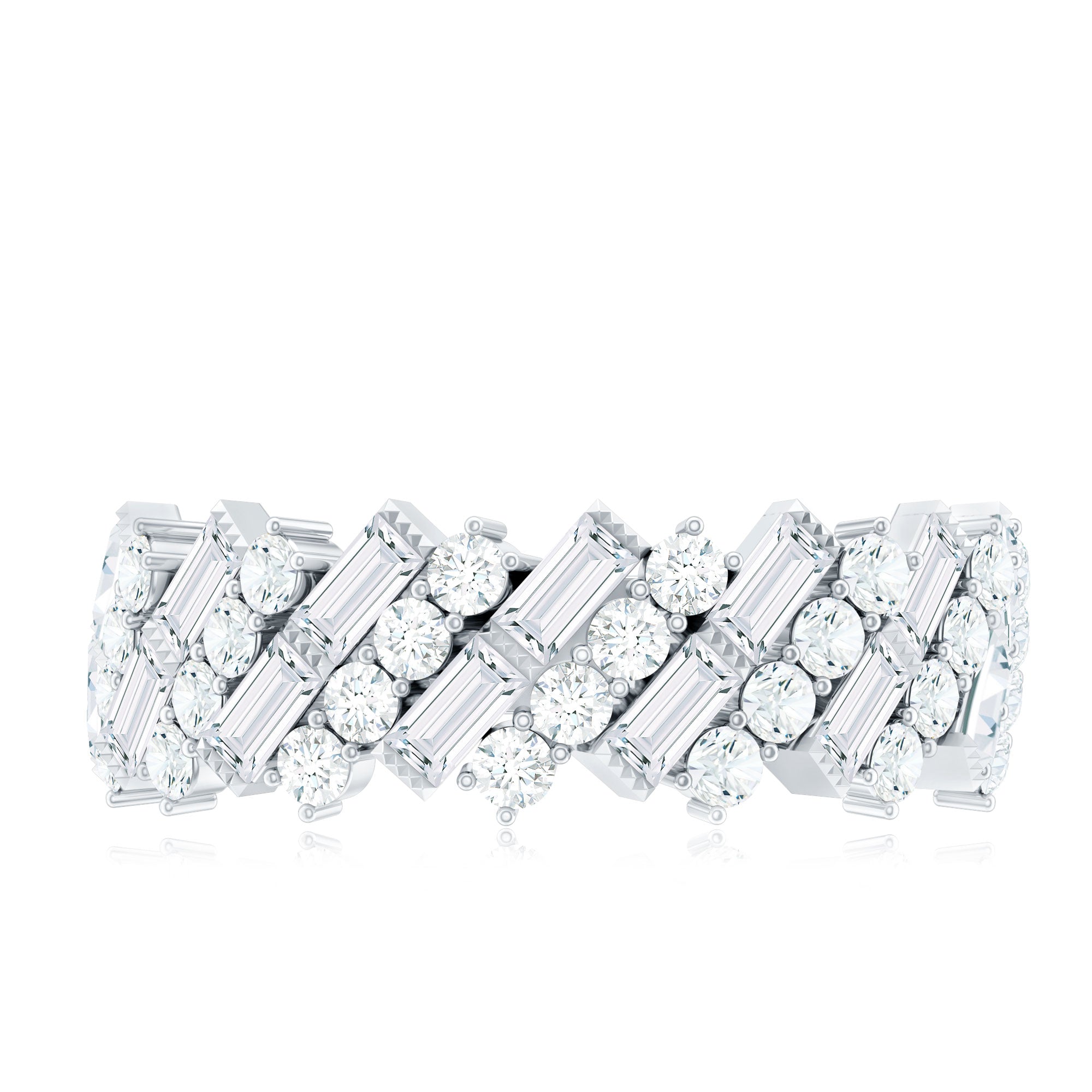 Stay together through thick and thin with this diamond wedding band ring as it shows a strong connection between two souls. The ring features baguette-shaped and round-shaped small diamonds encrusted over the ring, creating a sparkling effect that is sure to get much attention. The prong setting ensures the safety and durability of the stones. This is perfect for those who appreciate beauty with uniqueness.