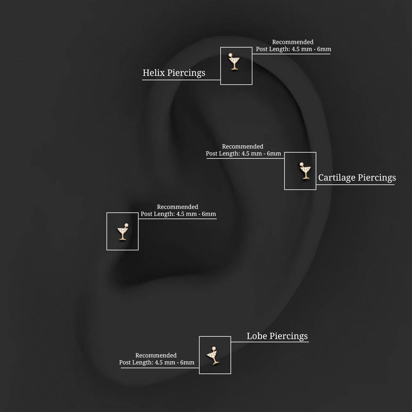 Diamond Wine Glass Earring for Tragus Piercing