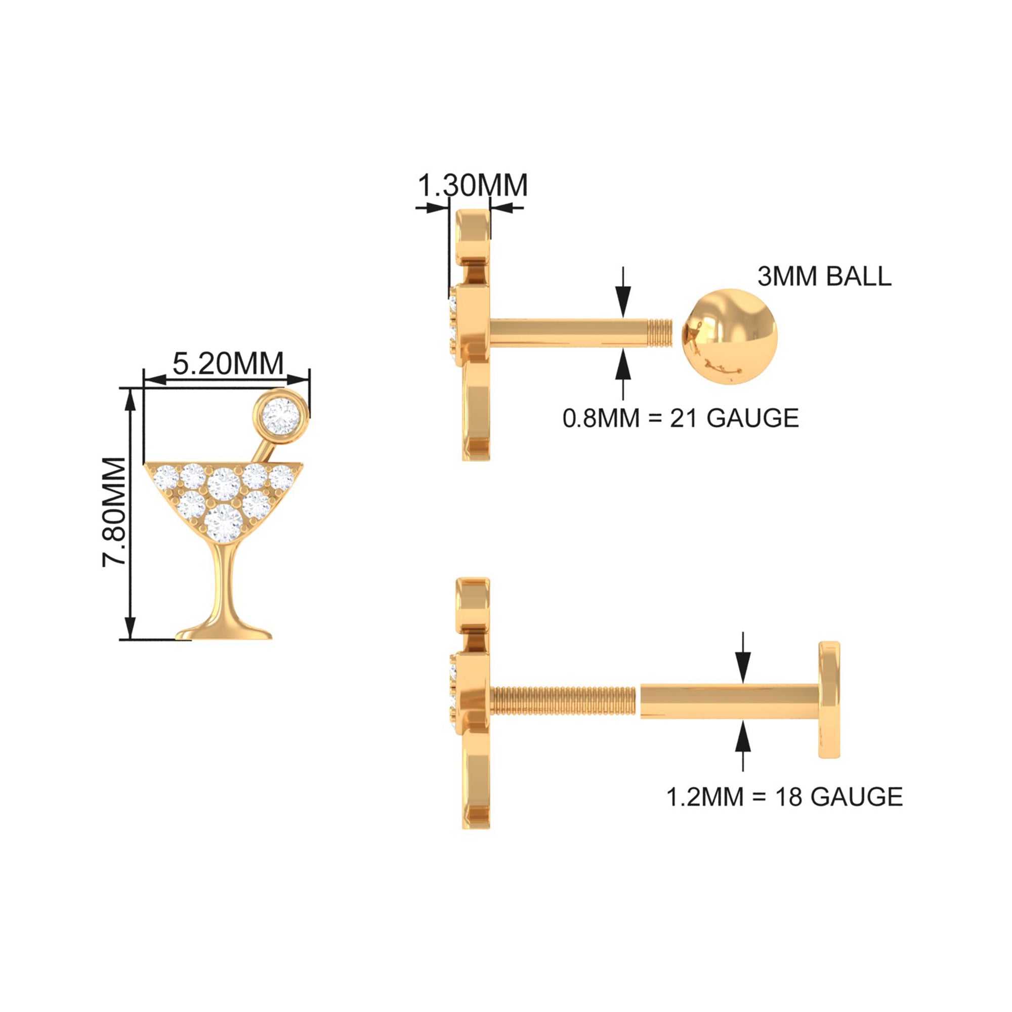 Wearing cute and trendy piercing earrings never goes out of style! You can create your distinctive fashion by wearing this Diamond Wine Glass Earring.This stunning earring features sparkling Diamonds delicately set in Pave Setting on a perfect Wine Glass Design. You can also style this Diamond Earring on your multiple piercings like Helix, Cartilage, Tragus, Conch, or Upper Lobe Piercing. This earpiece can be the perfect gift for your loved ones to surprise this holiday season.