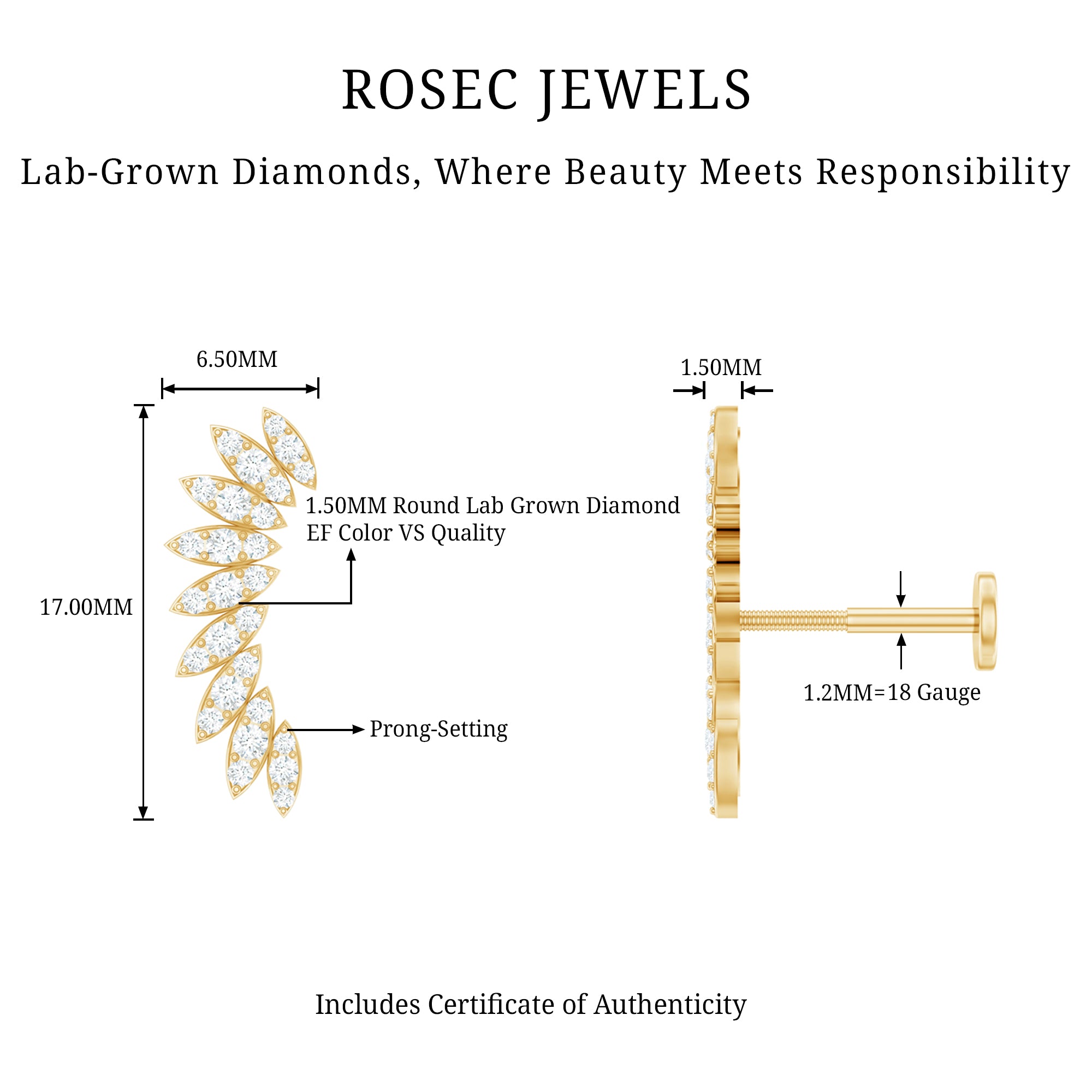 Check out this stunning Diamond Climber Earring, which is a fantastic addition to your ear stack. This earring showcases sparkling Diamonds arranged in marquise shapes, giving off a dazzling, eye-catching shine. Its unique wing-shaped design brings a special flair to your piercing collection, helping you stand out from the crowd. You can wear this Diamond Ear Piercing in various spots like Cartilage, Helix, and Upper lobe, allowing you to express your style with ease. This Diamond Wing Earring makes for an unforgettable gift to surprise your loved ones. You can pair it with your casual or party outfits to shine like a star. The Diamond Ear Crawler is the simplest way to elevate your style to new levels. It features a secure flat back closure, making it easy to wear and perfect for transitioning from day to night. For a trendy look, combine this Curved Earring with gemstone studs or drops. To enhance your special occasion, this Diamond Stud Earring comes in a premium storage box, ensuring a luxurious presentation for your gift.