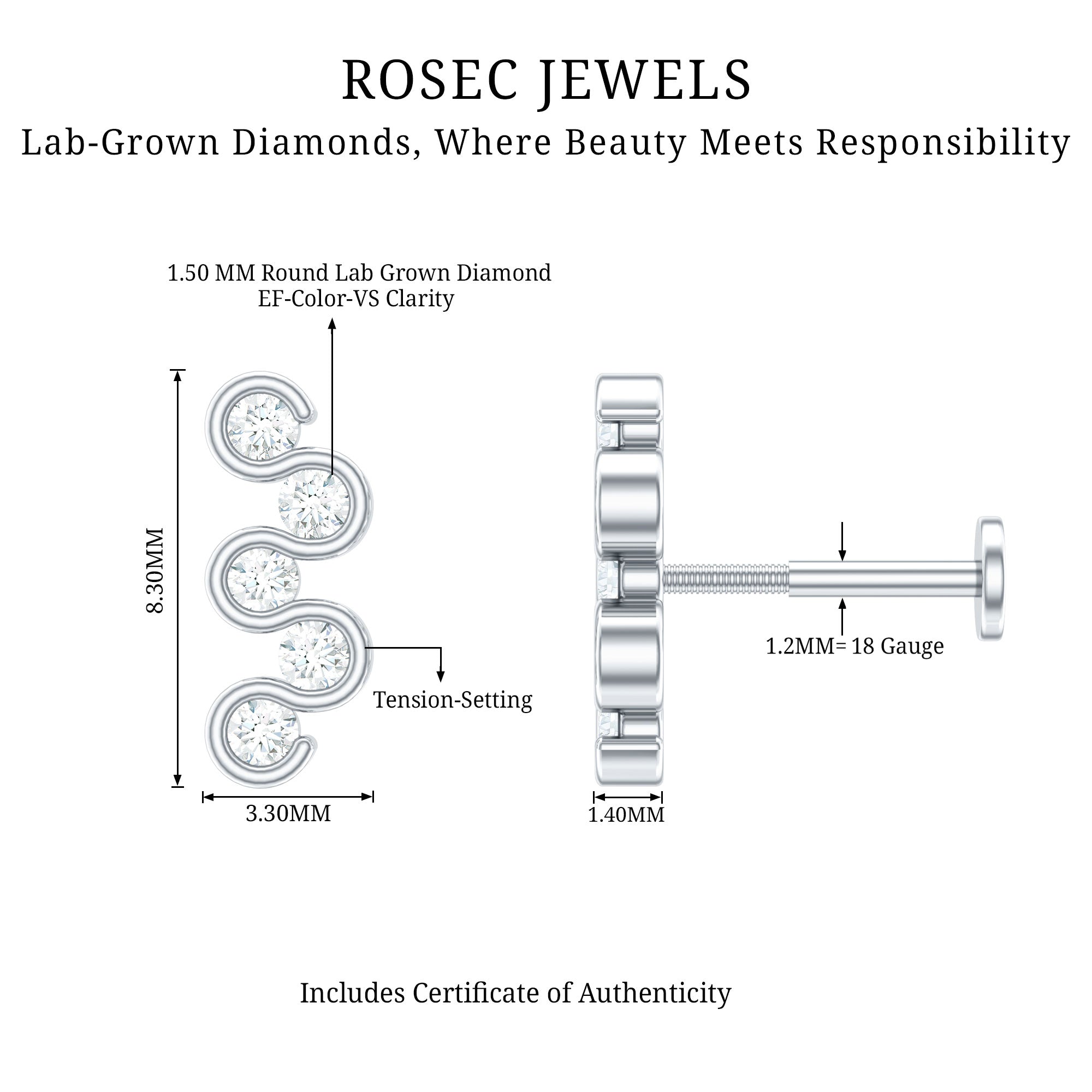 We know youve been crushing over this unique Diamond Zig Zag Bubble Earring! Featuring Round Diamonds on a stunning zig zag design. You can wear it on your Helix, Cartilage, Conch, Tragus, or Upper Lobe Piercing. The Flat Back Closure will keep it snugly secured in place. Whether you want to add a touch of sparkle to your ear stack or amp up any party or everyday look, go with this Diamond Crawler Earring surely you wont regret it! Looking for a perfect gift? Grab this Diamond Earring for your special girl and add a touch of sparkle to her piercing jewelry collection.