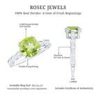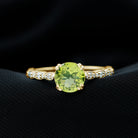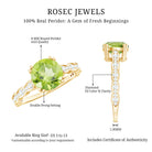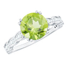 Double Prong Set Peridot Solitaire Ring with Diamond Side Stones