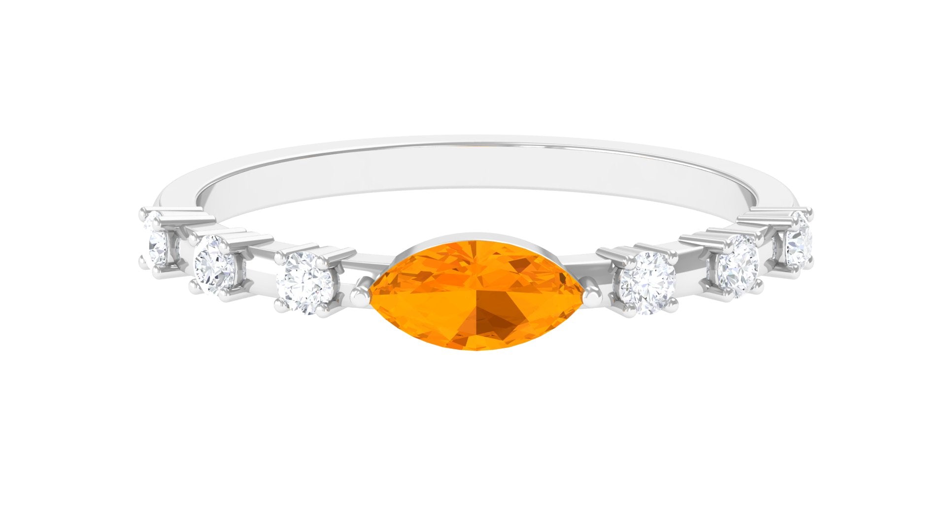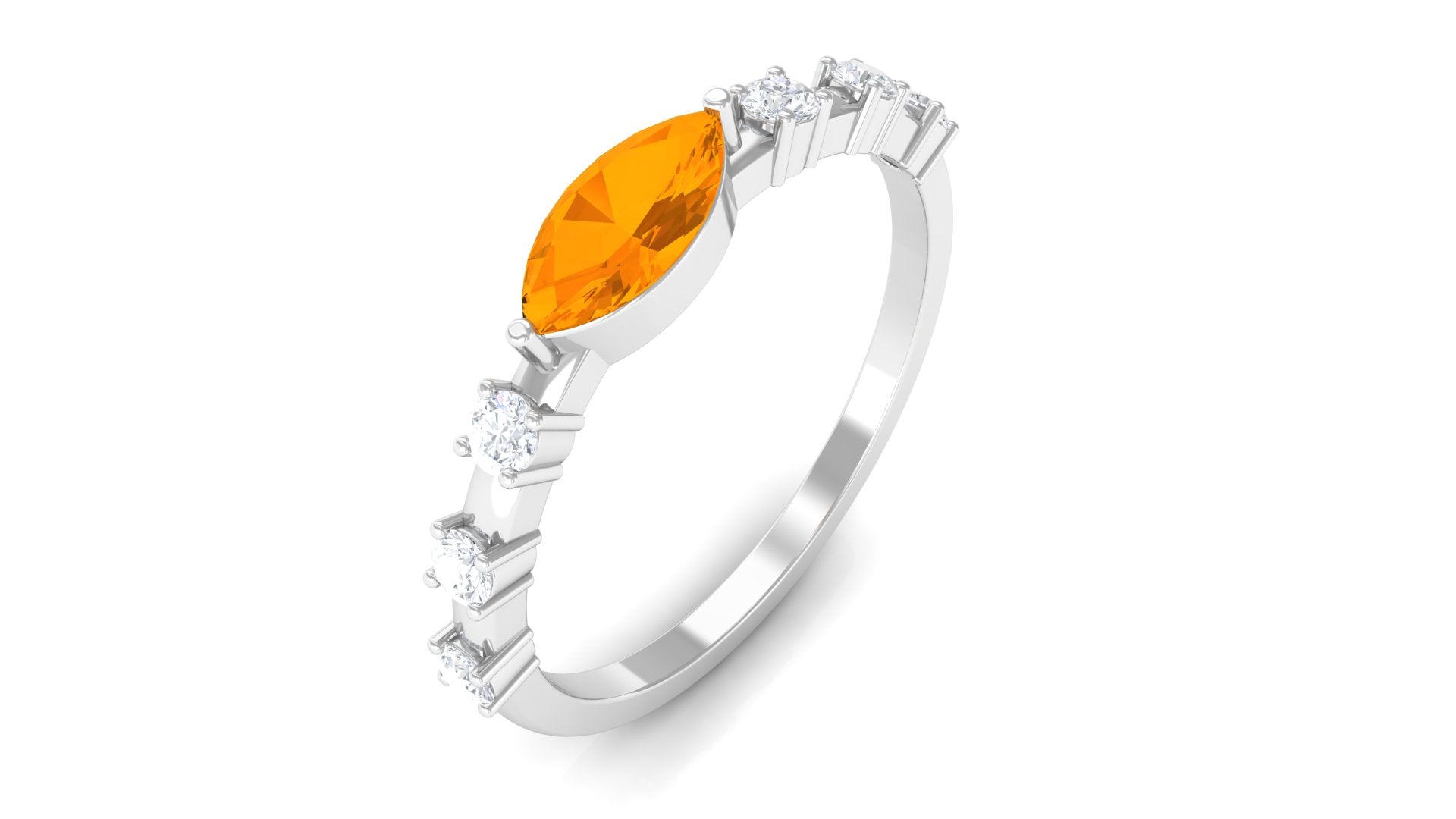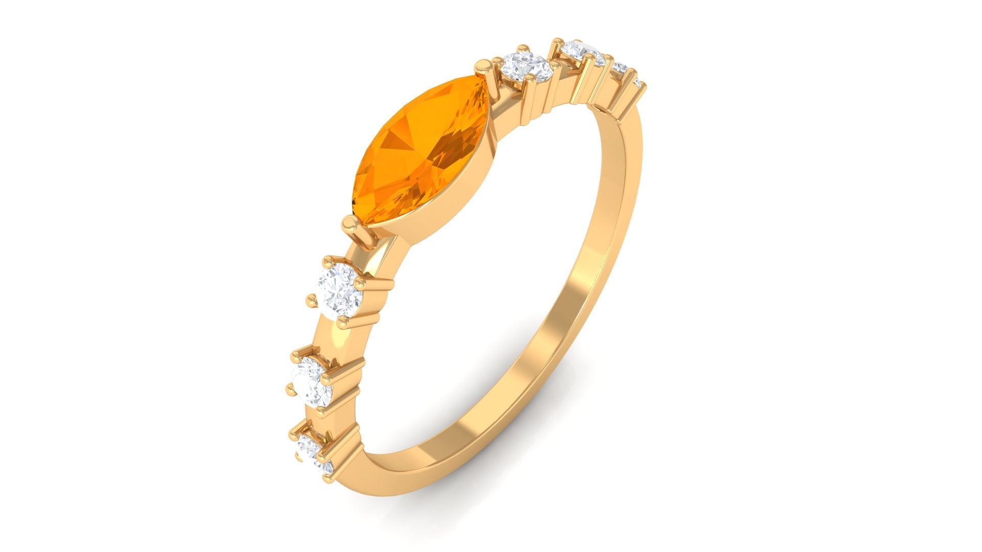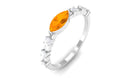 Give your love this East West Engagement Ring as a birthday gift. This Engagement Ring is beautifully crafted with Marquise Cut Fire Opal as a solitaire in a 2-prong setting with Round Diamond in a spaced accent. This Fire Opal Engagement Ring is mounted in gold metal to create a charming appeal.