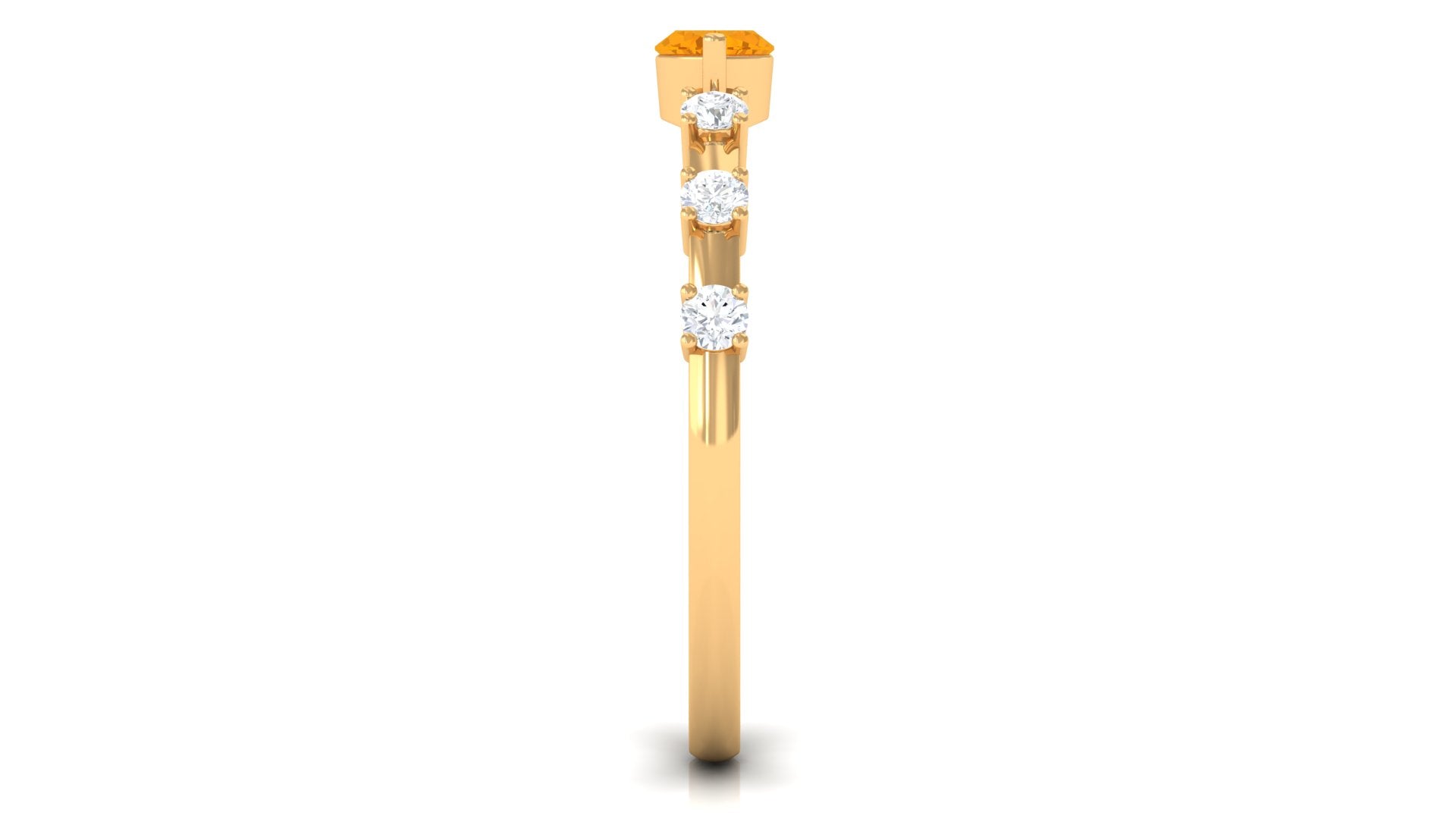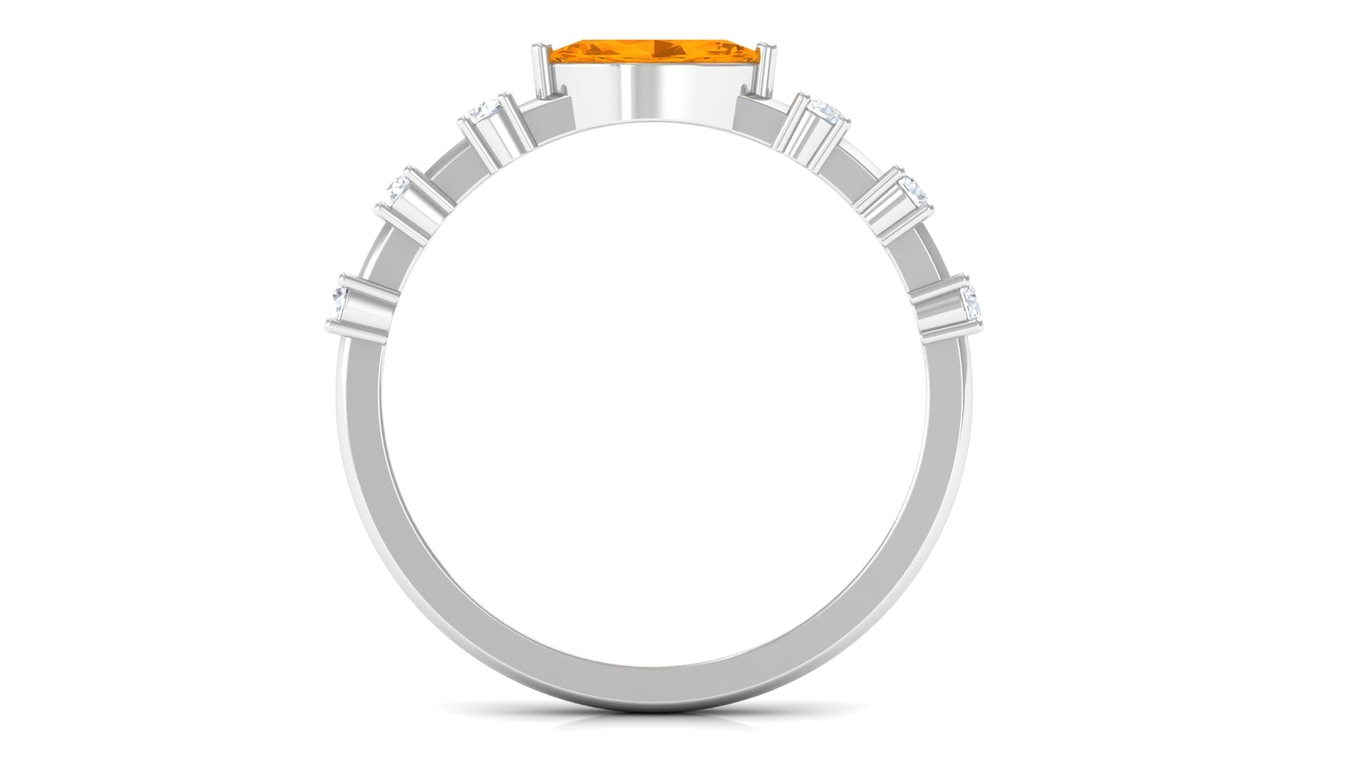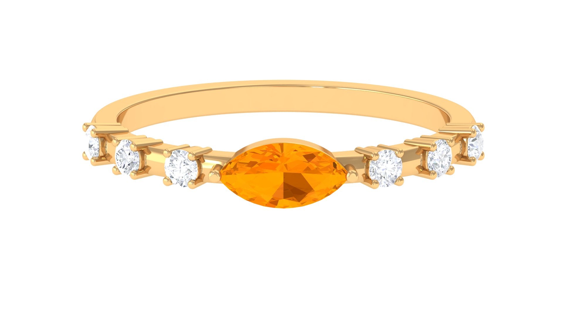 Give your love this East West Engagement Ring as a birthday gift. This Engagement Ring is beautifully crafted with Marquise Cut Fire Opal as a solitaire in a 2-prong setting with Round Diamond in a spaced accent. This Fire Opal Engagement Ring is mounted in gold metal to create a charming appeal.